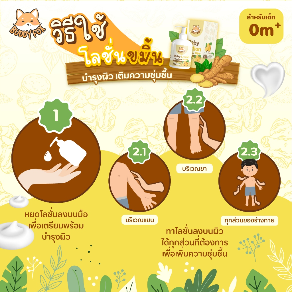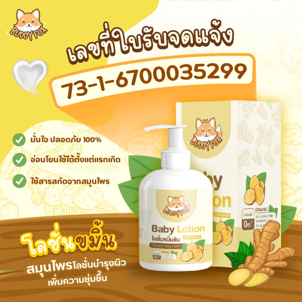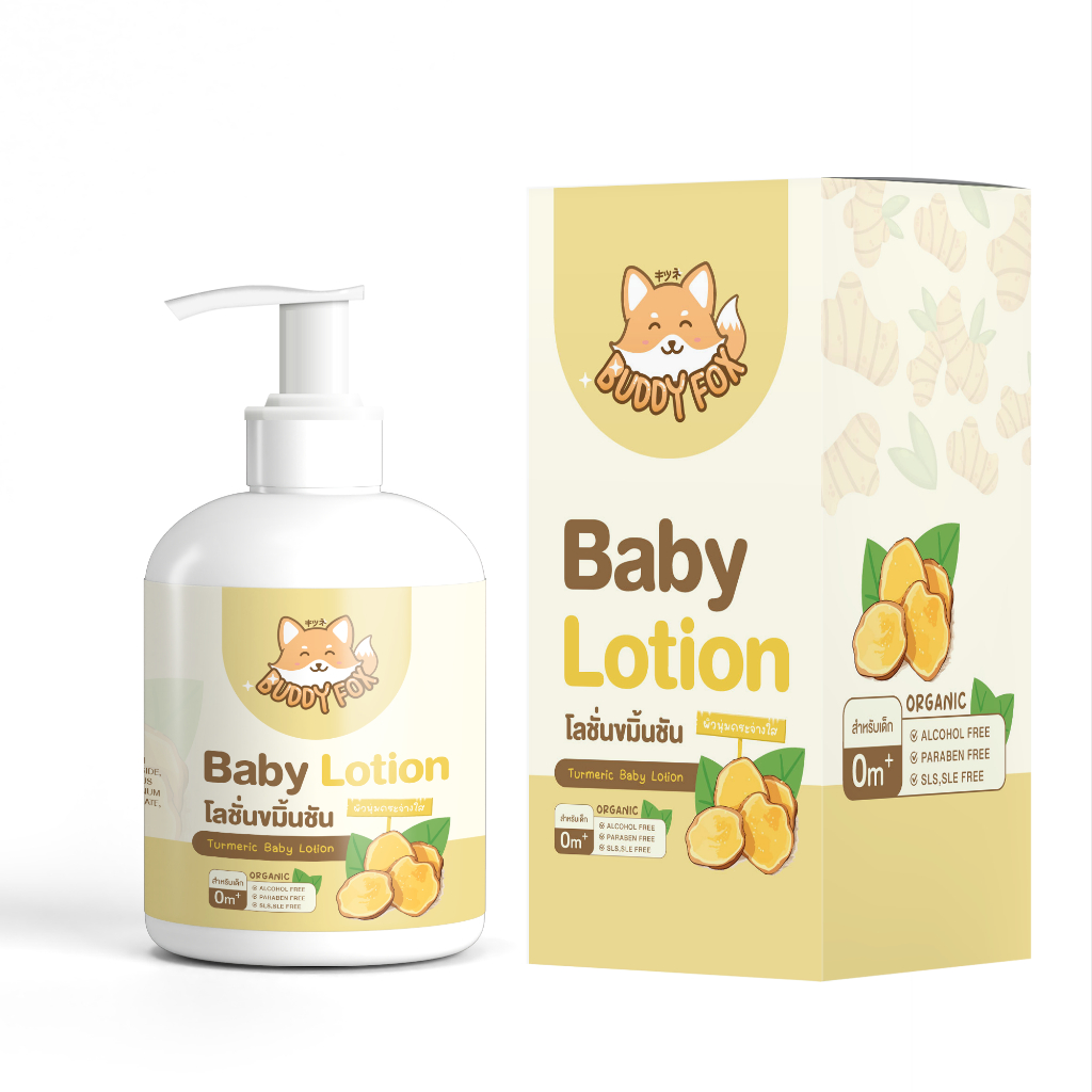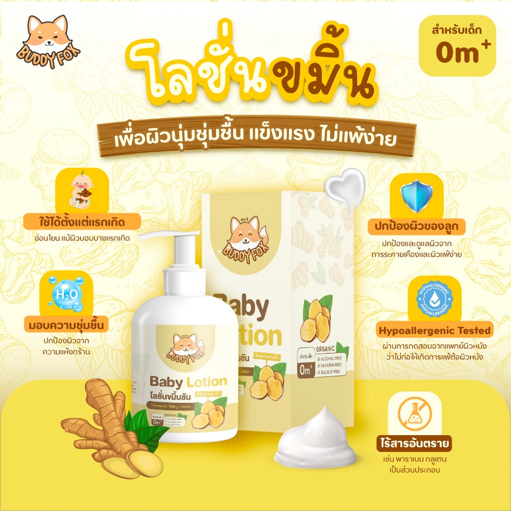 Buddy fox โลชั่นขมิ้น ครีมทาผิวเด็ก อ่อนโยนต่อผิว ช่วยให้ผิวกระจ่างใส ลดผดผื่นคัน รอยดำ รอยแดง