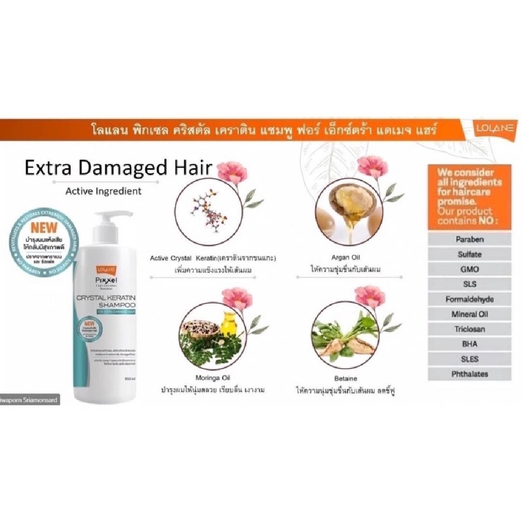 Lolane โลแลน แชมพู เคราติน สำหรับผมทำสี และผมแห้งเสีย ชี้ ฟู ขนาด950ml.