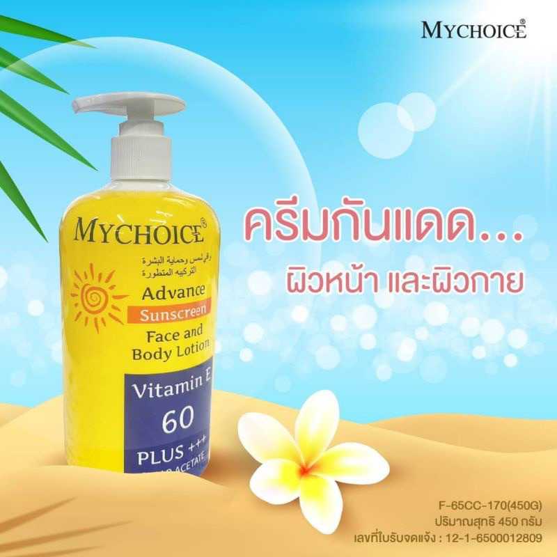 กันแดดมายช้อยส์ Mychoice Sunscreen SPF50 Vitamin E 60 Plus +++ ขนาด 450 ml.