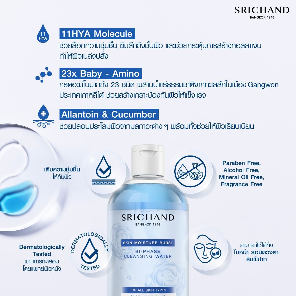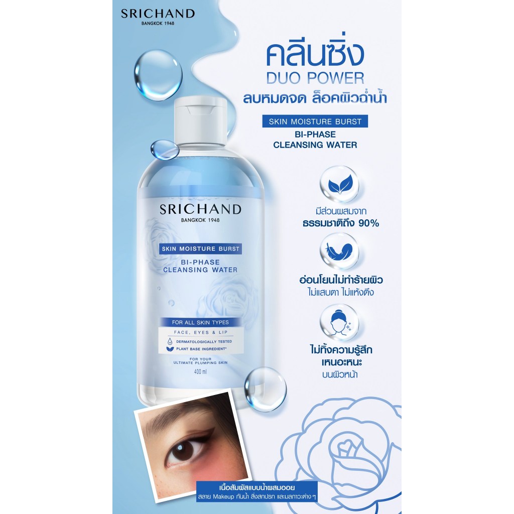 ถูก/แท้/มีไลฟ์ เช็ดเครื่องสำอาง Srichand Moisture Burst Bi-Phase Cleansing Water ศรีจันทร์ คลีนซิ่ง ล้างเครื่องสำอาง