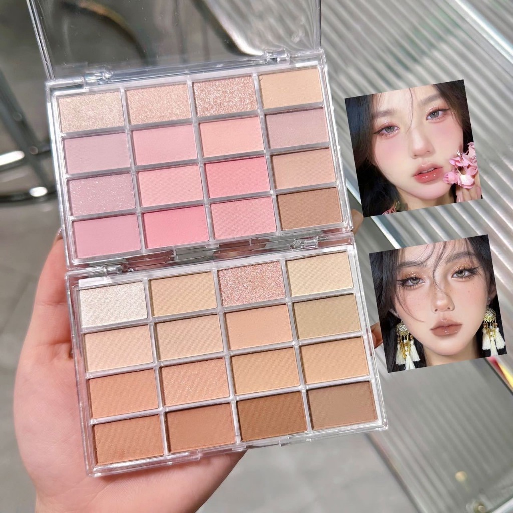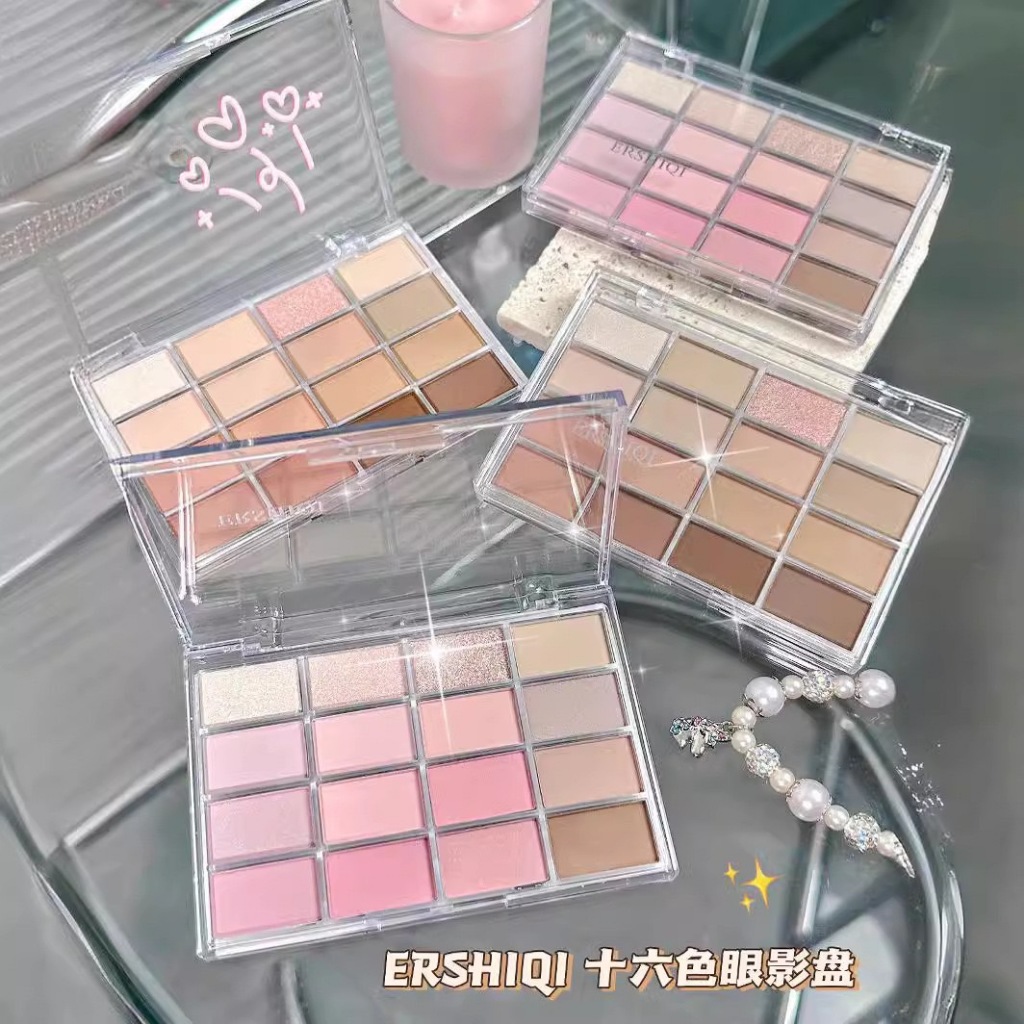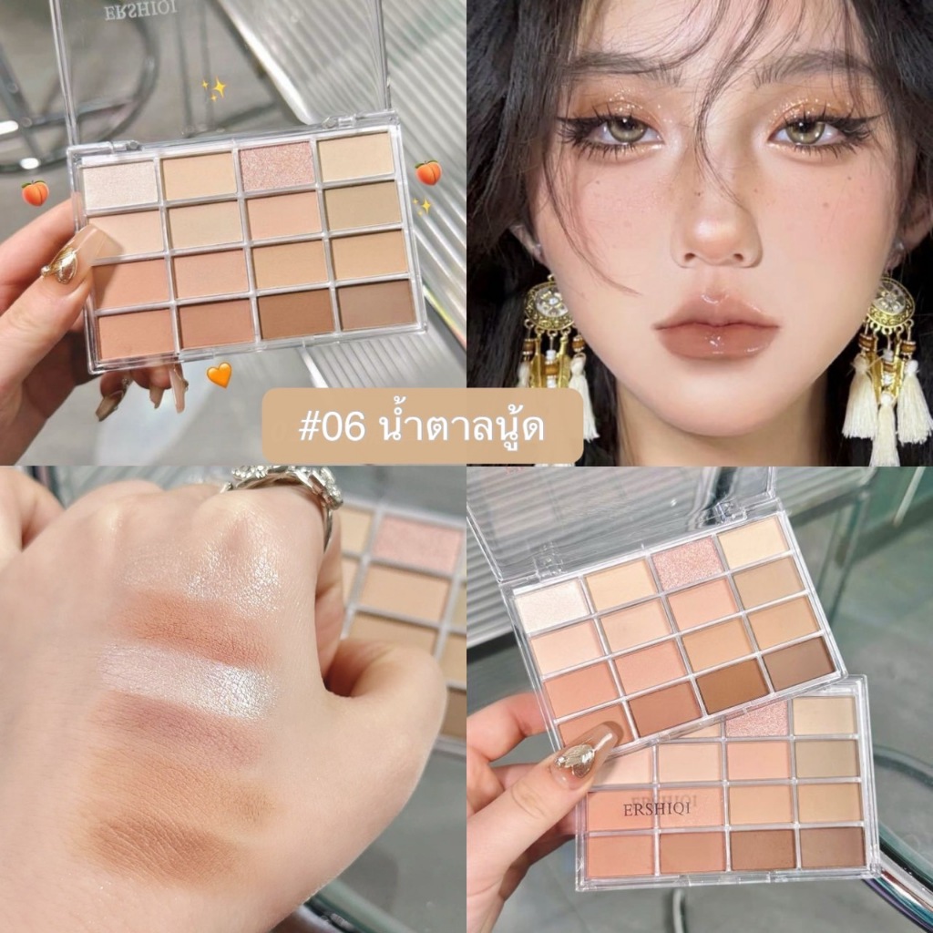 Ershiqi 1269 พาเลทอายแชโดว์ 16 สี พาเลททาตาเนื้อใยไหม เนื้อแมท ประกายชิมเมอร์ โทนสีชมพู โทนน้ำตาล กันน้ำ กันเหงื่อ ติดทน