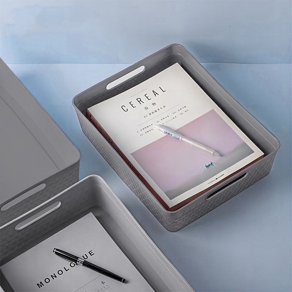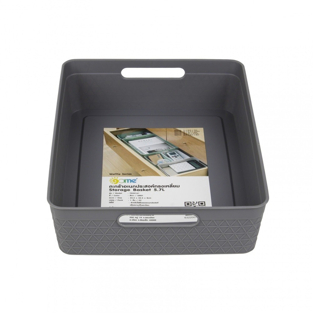 GlobalHouse GOME ตะกร้าอเนกประสงค์ทรงเหลี่ยม รุ่น Waffle TG54161 ขนาด 25.5x32.5x8 ซม.(A4) สีเทา สินค้าของแท้คุณภาพดี