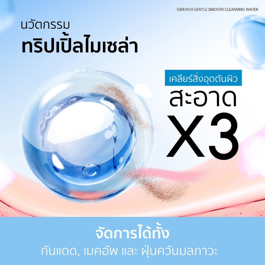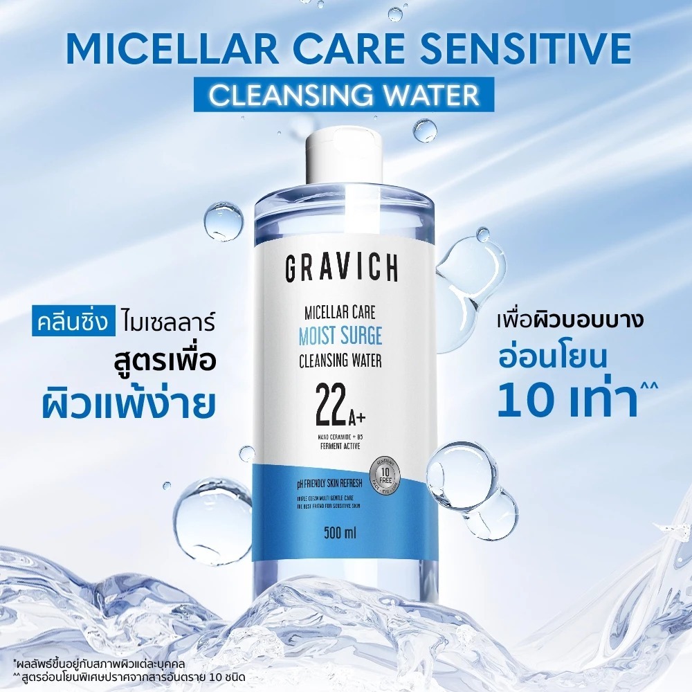 ถูก/แท้/มีไลฟ์ เช็ดเครื่องสำอาง Gravich Cleansing Water คลีนซิ่ง ไมเซล่า ล้างเครื่องสำอาง หน้าชุ่มชื้น อ่อนโยน