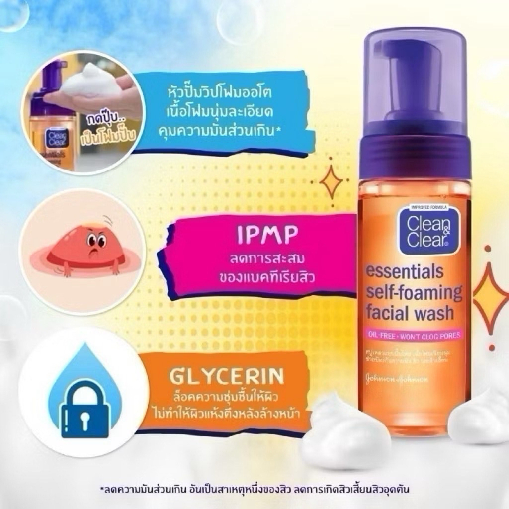 คลีน แอนด์ เคลียร์ โฟมล้างหน้า เซลฟ์โฟมมิ่ง เฟเชียล วอช 150มล.