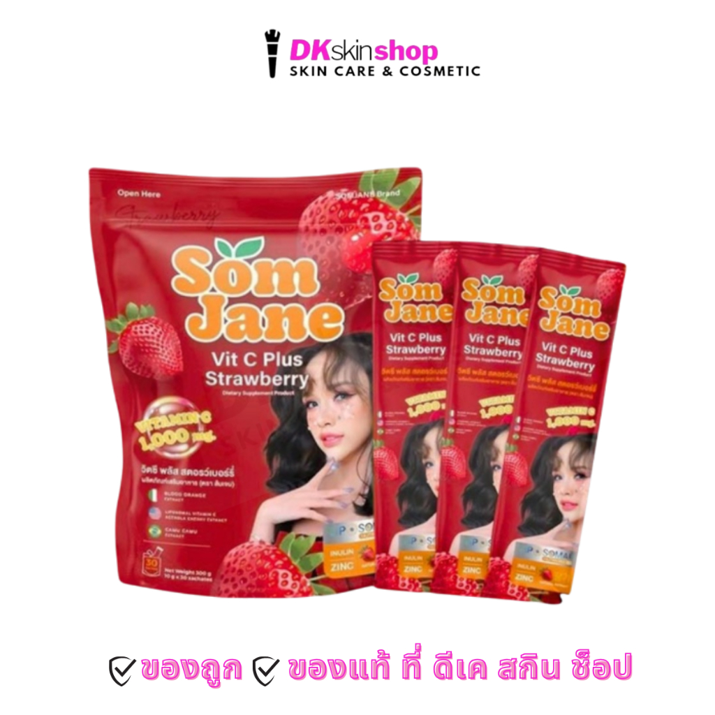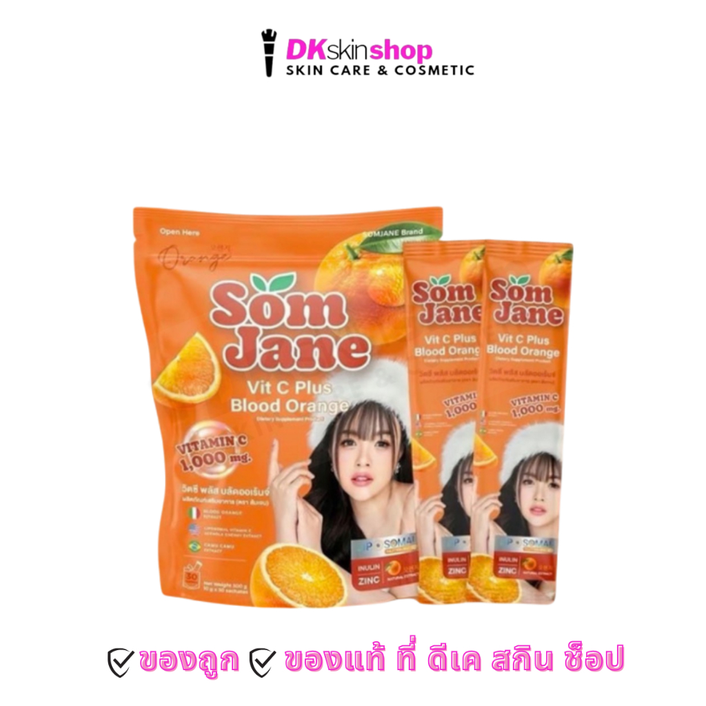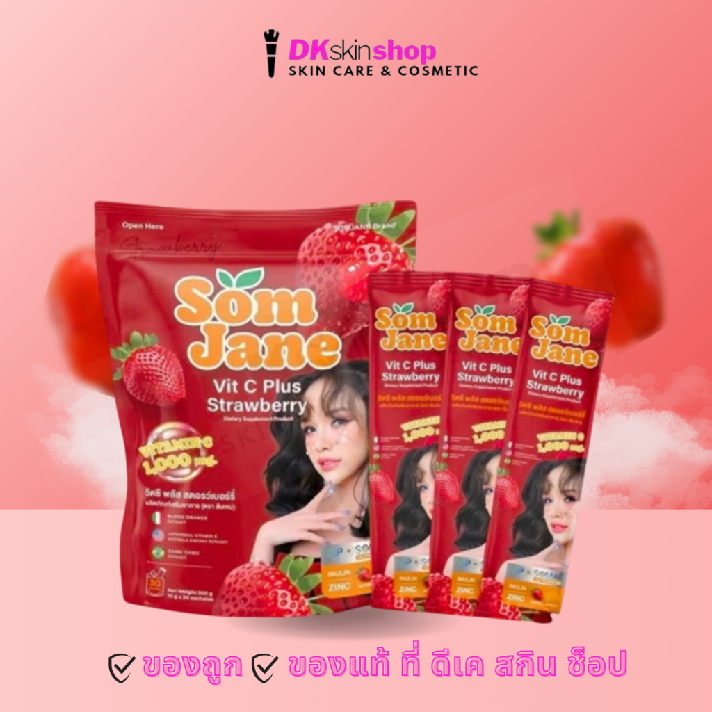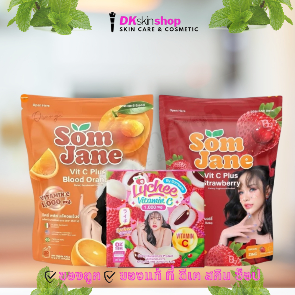 ส้มเจน วิตซี พลัส บลัดออเร้นจ์/ลิ้นจี่/สตรอว์เบอร์รี่/องุ่นเคียวโฮ Somjane Vit C Plus (ปรรจุ 30 ซอง)