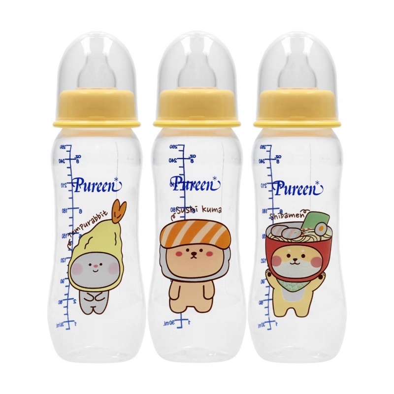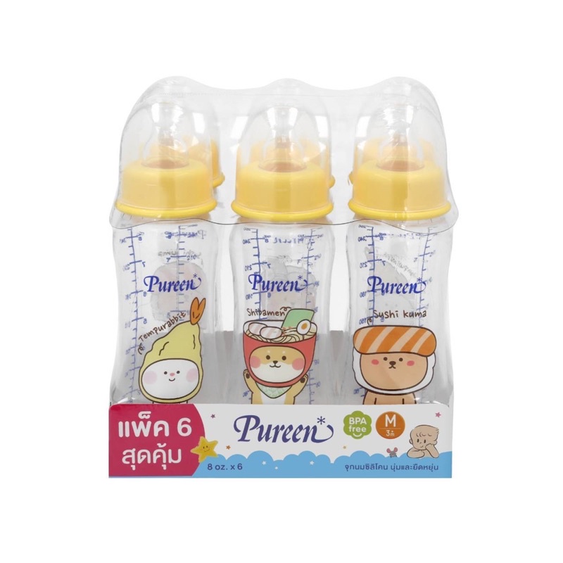 Pureen เพียวรีน ขวดนมแพ็คสุดคุ้ม ทรงโค้ง ขนาด 8 oz แพ็ค 6 ขวด (ฟ้า/เหลือง คละสี)