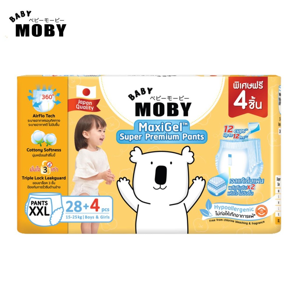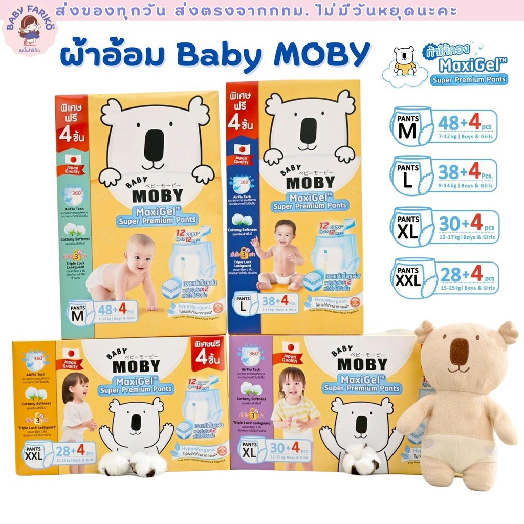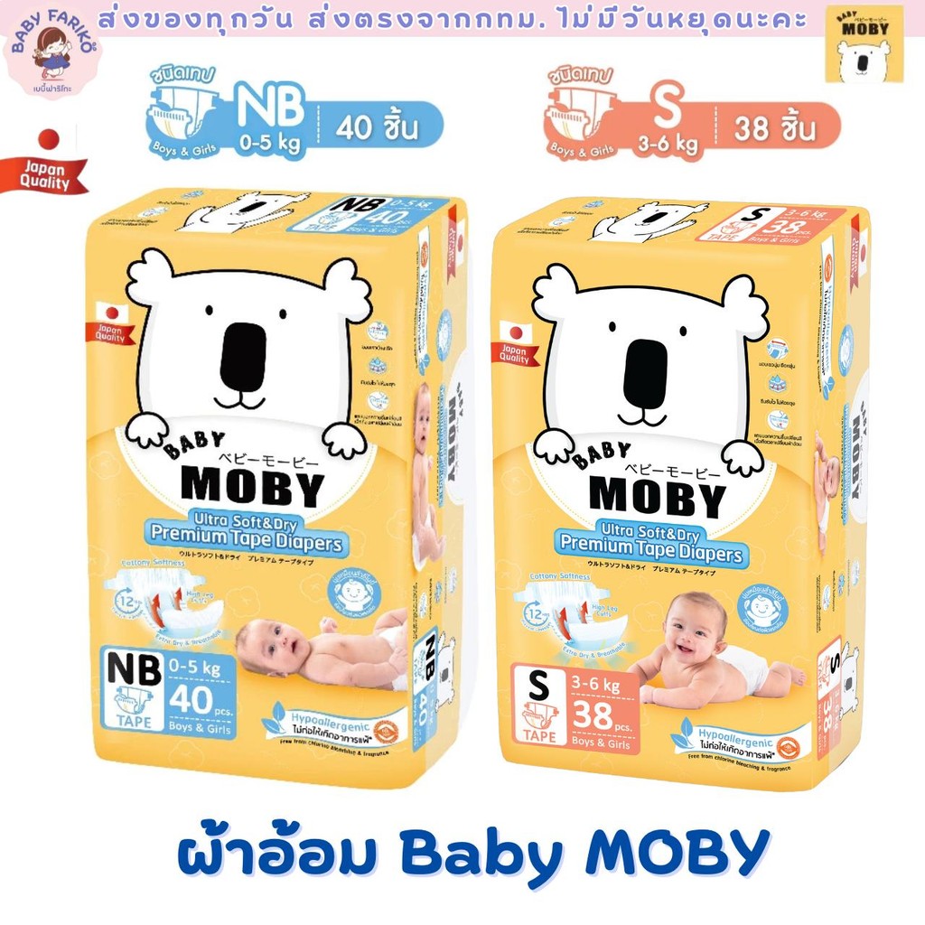 (ส่งด่วน/ส่งทันที🔥) Moby โมบี้ ผ้าอ้อมสำเร็จรูป มีสองแบบ NB-S (แบบเทป) , M- XXL (แบบกางเกง) Premium ซึมซับมากพิเศษ