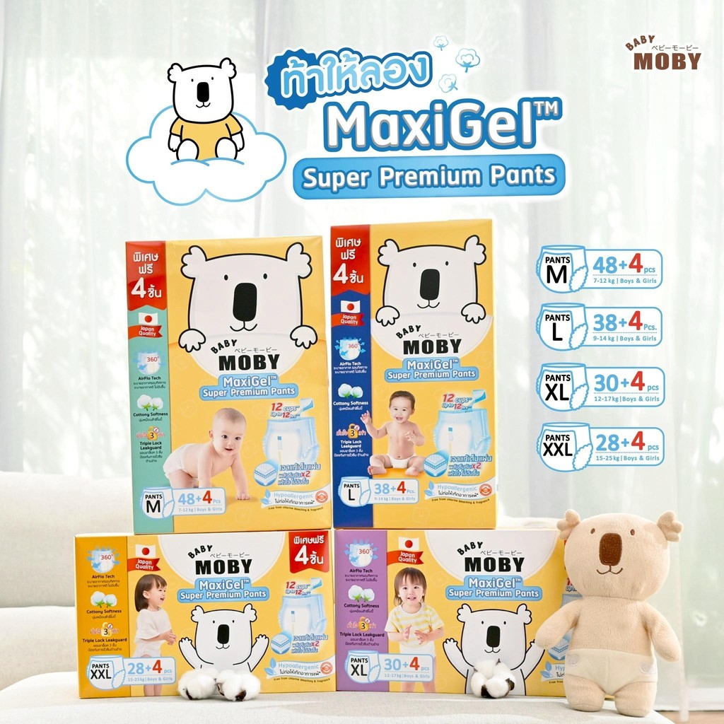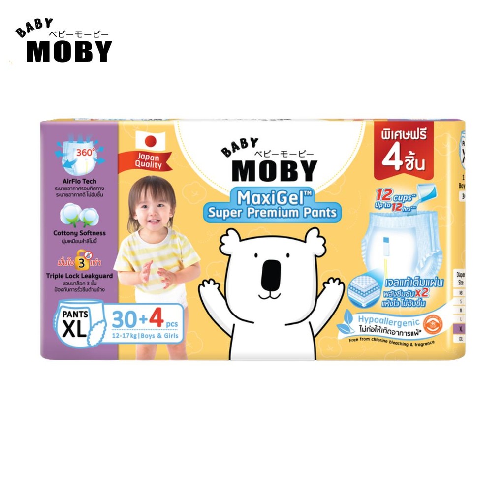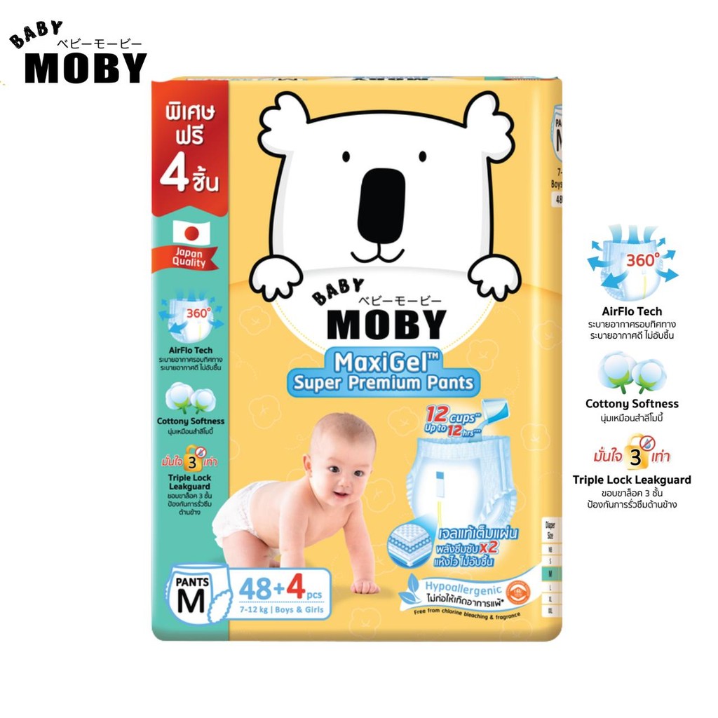 (ส่งด่วน/ส่งทันที🔥) Moby โมบี้ ผ้าอ้อมสำเร็จรูป มีสองแบบ NB-S (แบบเทป) , M- XXL (แบบกางเกง) Premium ซึมซับมากพิเศษ
