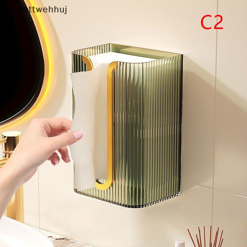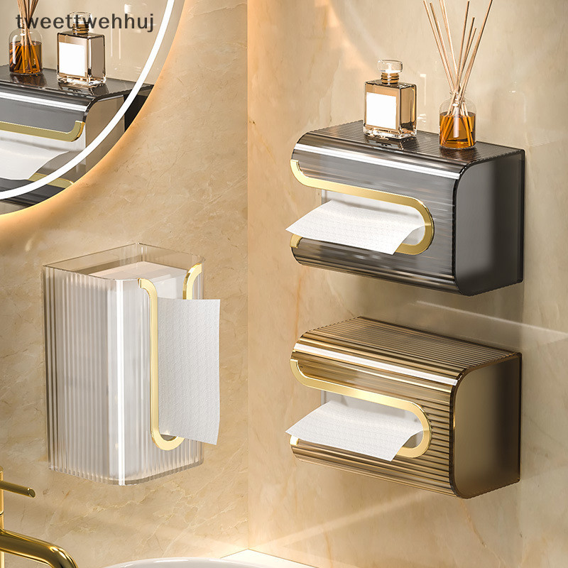 Tw ห้องน้ําติดผนัง Self-Adhesive กล่องกระดาษทิชชู Multi-Function กระดาษเช็ดมือกล่องเก็บแบบพกพาวาดกล่องสินค้า huj