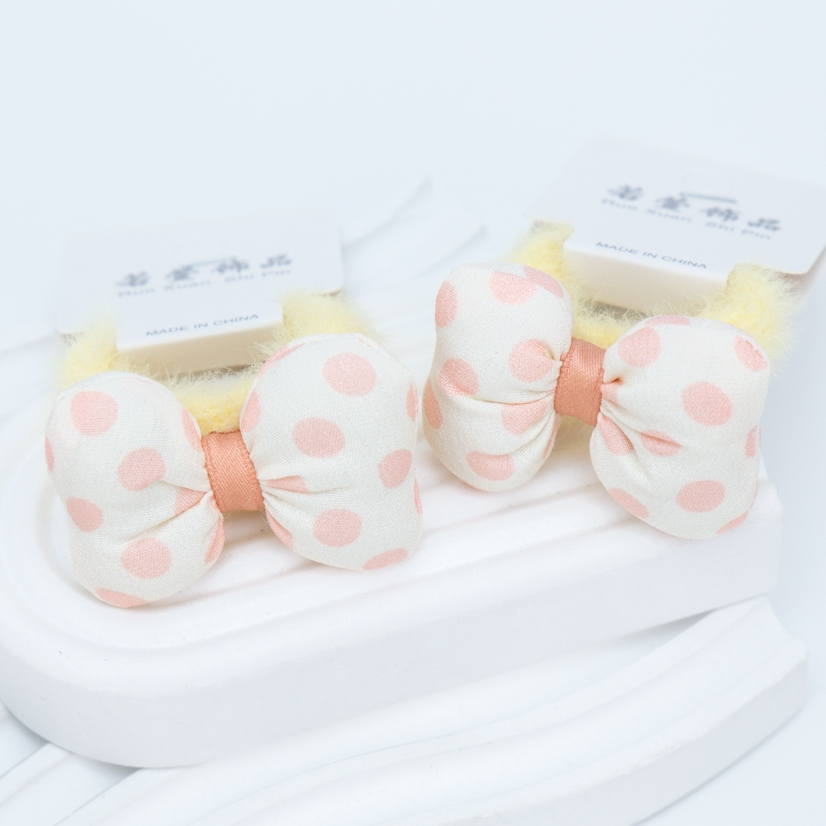 [แพ็ค5ชิ้น] ยางมัดผมโบว์ผ้าลายจุดสไตล์เกาหลี