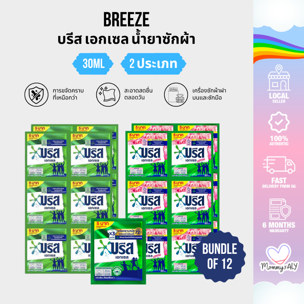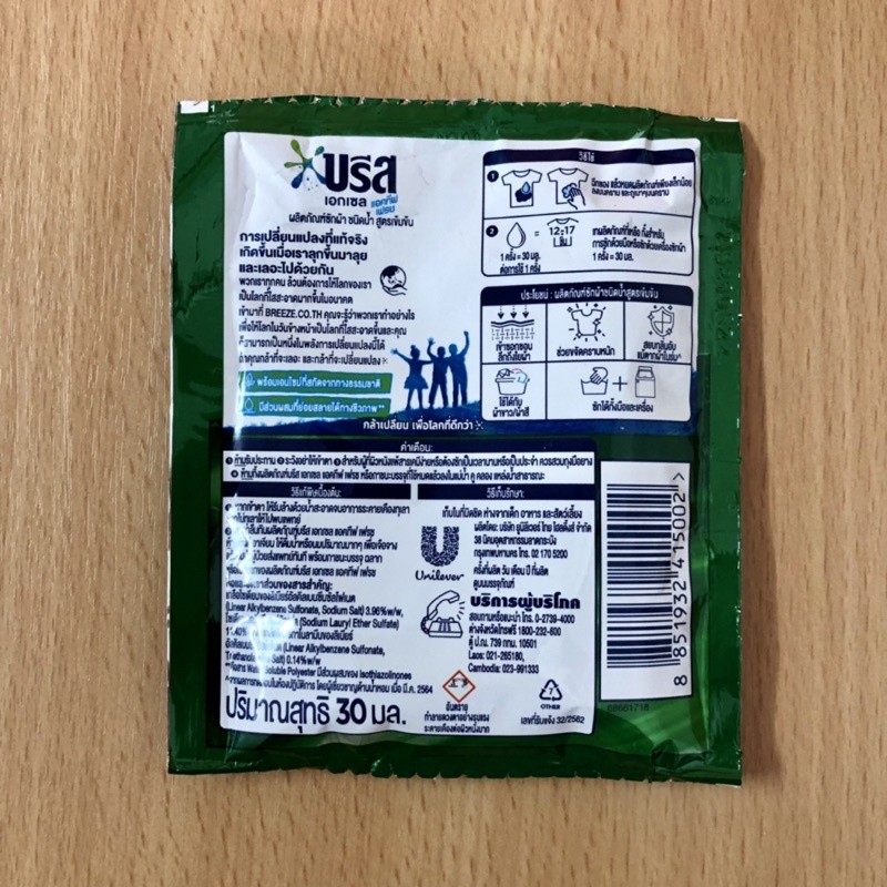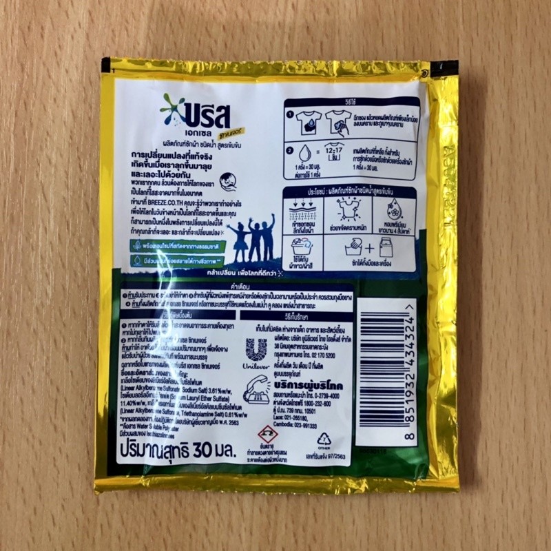 Breeze บรีส เอกเซล ซิกเนเจอร์ น้ำยาซักผ้า สูตรเข้มข้น ชนิดซอง 30 มล. สำหรับซักมือและซักเครื่อง