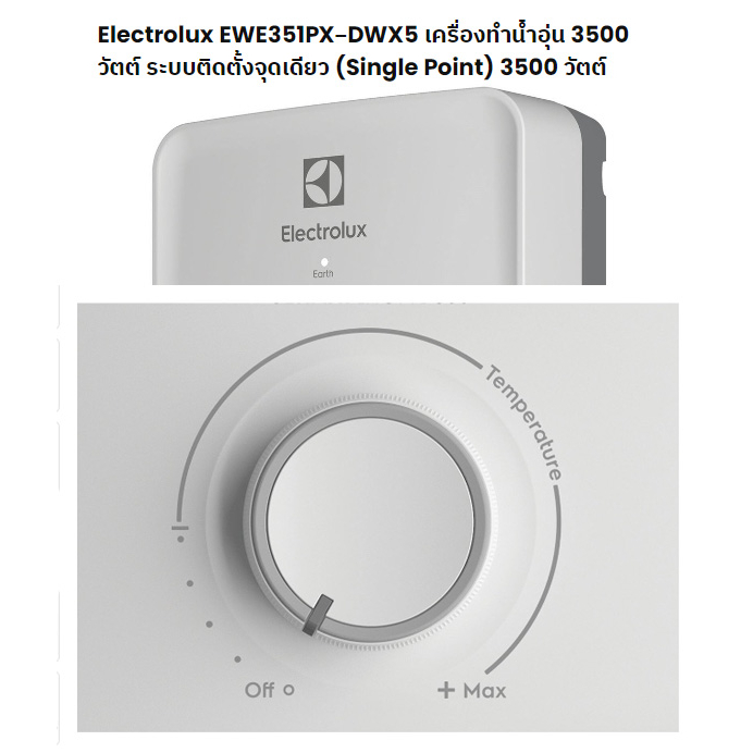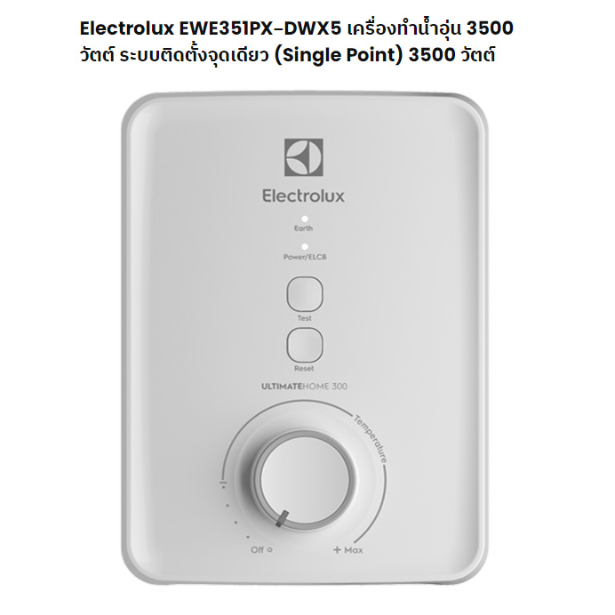 เครื่องทำน้ำอุ่น ยี่ห้ออีเลคโทรลักซ์ Electrolux รุ่น EWE351PX-DWX5 3500วัตต์ 1set จำนวน 1กล่อง