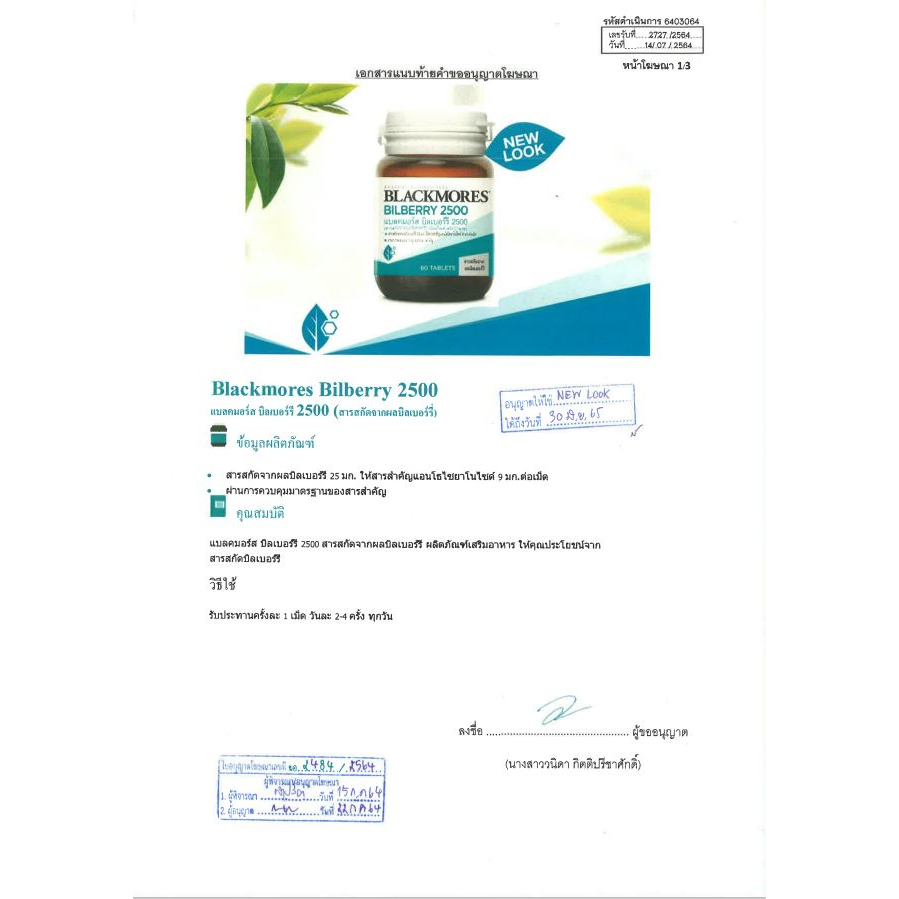 BLACKMORES BILBERRY 2500 MG บำรุงสายตา สารสกัดจากผลบิลเบอร์รี่ 60 เม็ด