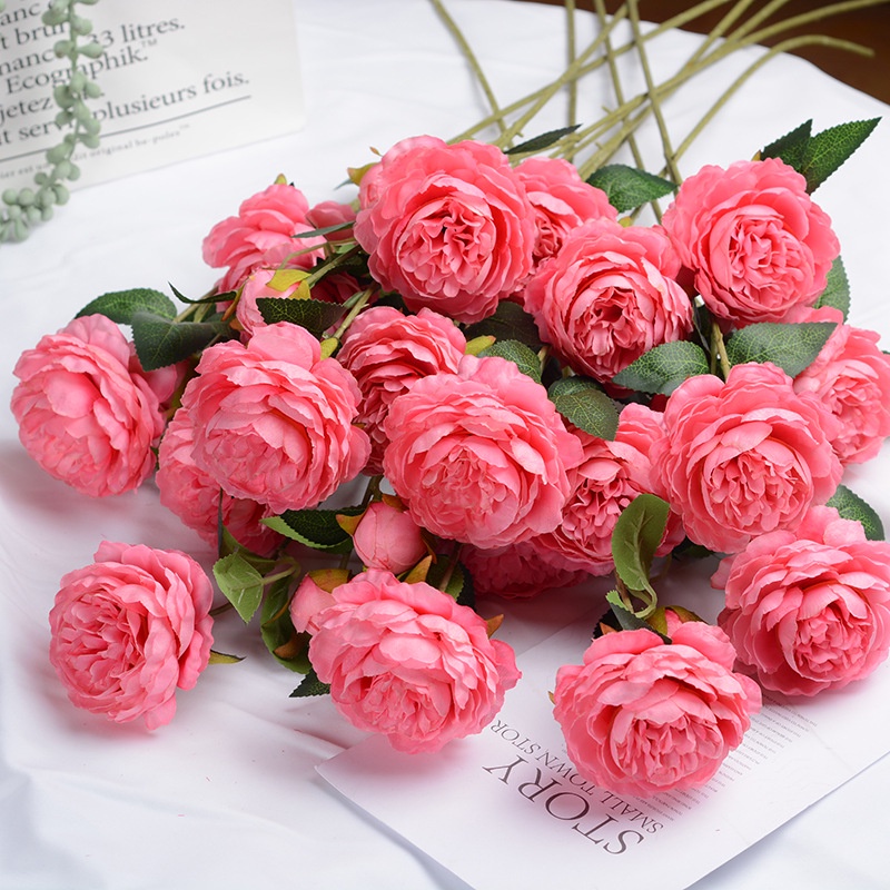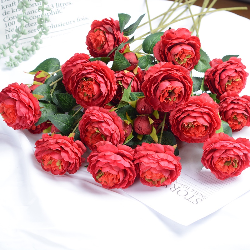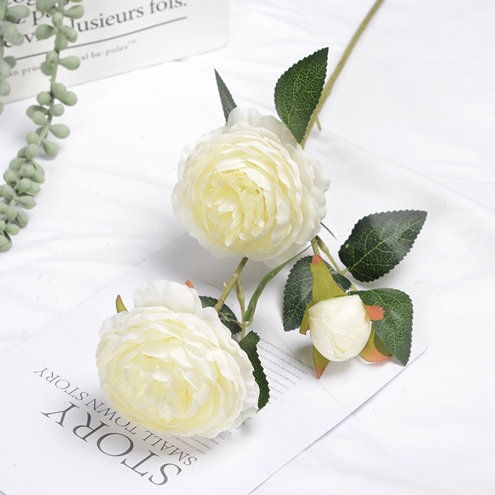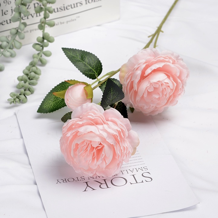 [ส่งด่วน1-2วัน] ดอกกุหลาบ3ดอก ดอกไม้ปลอมตกแต่งบ้าน ถ่ายรูป ช่อดอกไม้ พร็อพถ่ายรูป Rose