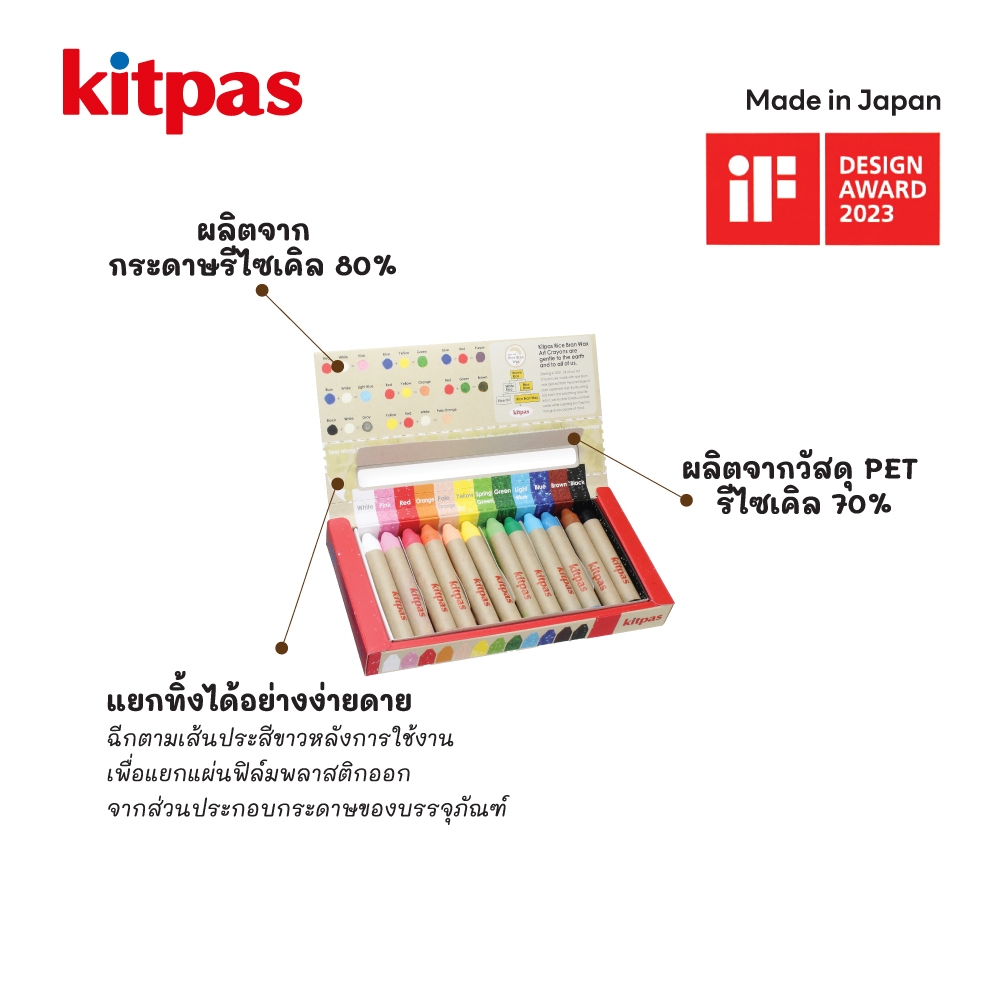 Kitpas (คิทพาส) สีเทียน Kitpas ผลิตจากขี้ผึ้งรำข้าวญี่ปุ่น รหัส B-KMRW