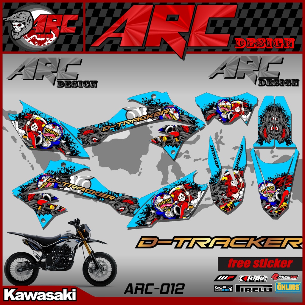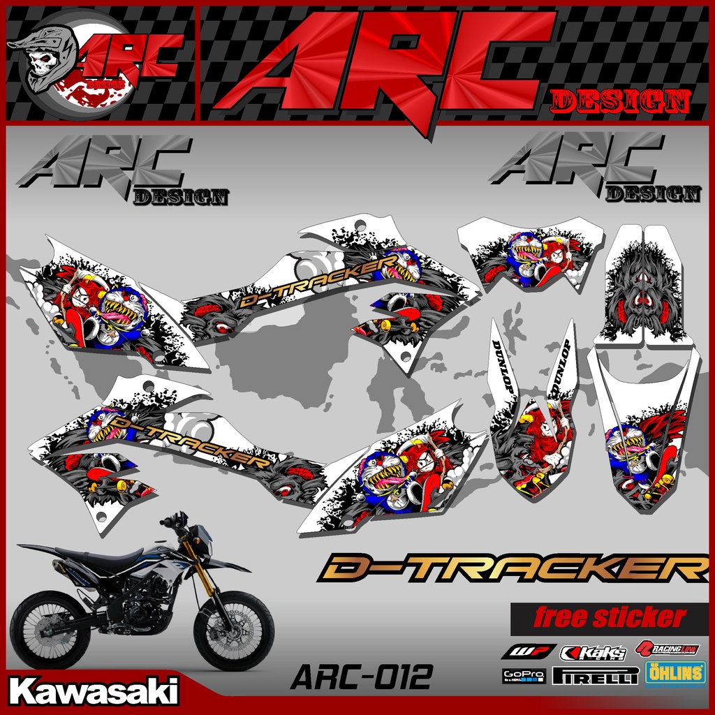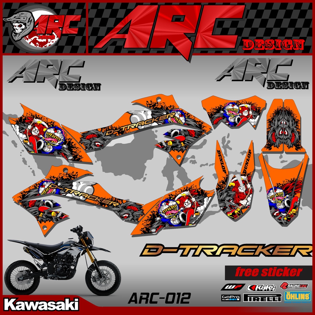 KLX DTRACKER 150 Semi Fullbody Cross Motorcycle Striping Sticker - D-TRACKER 150 New Custom Trail Supermoto Variation Strip Sticker Doraemon Zombie Design TS-012