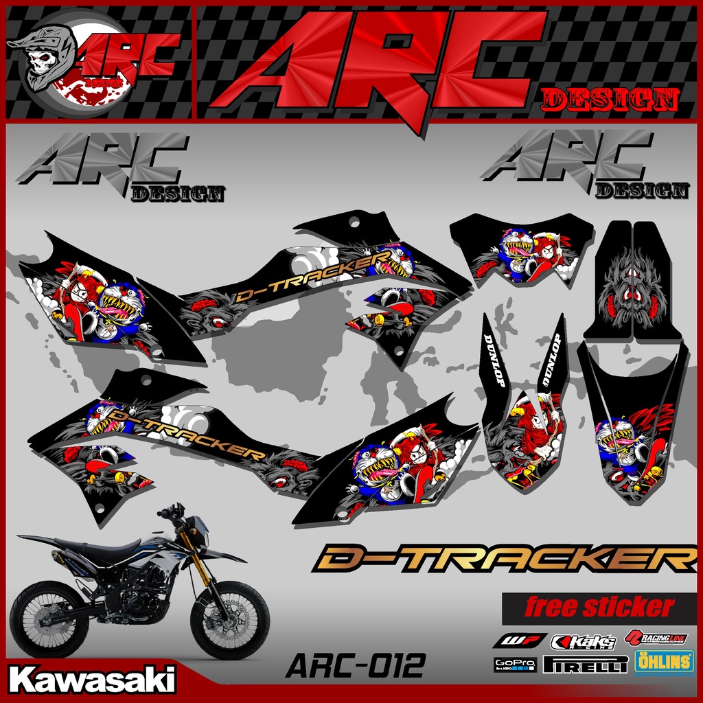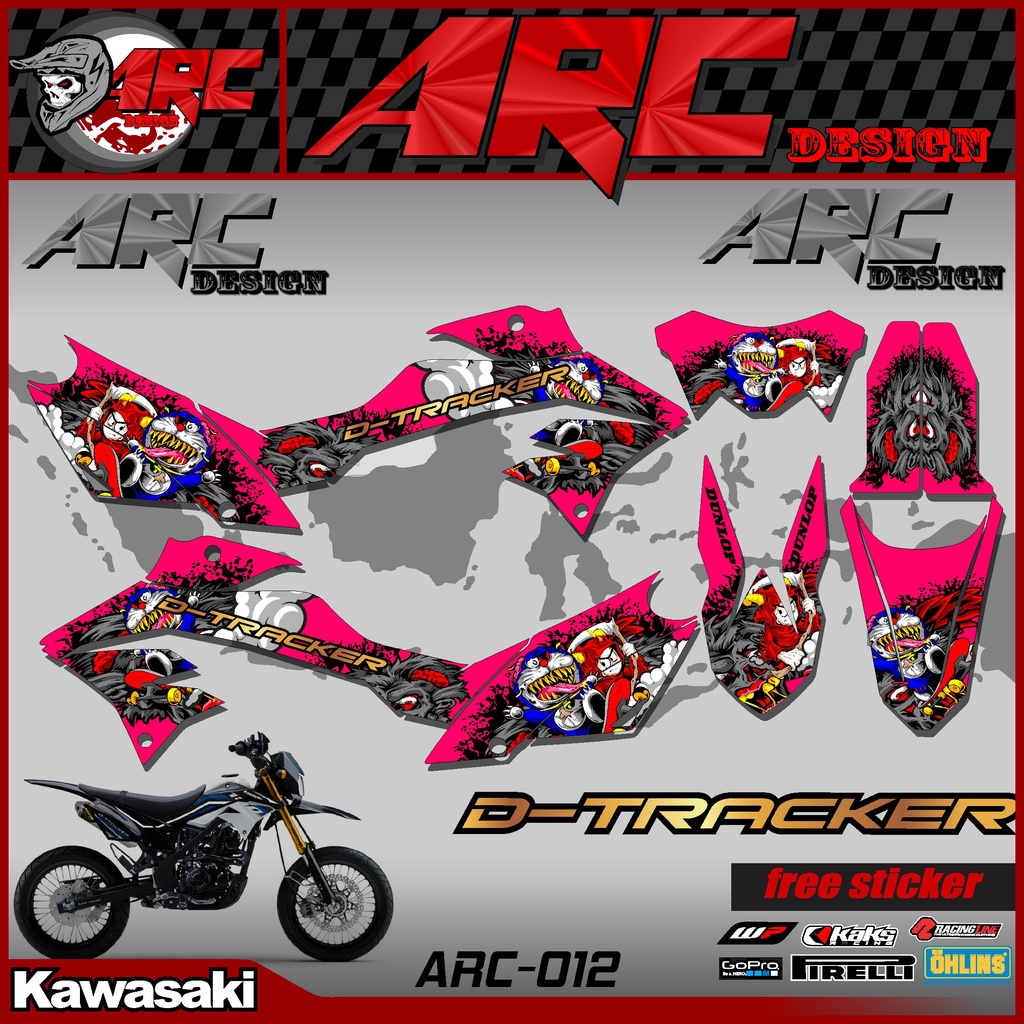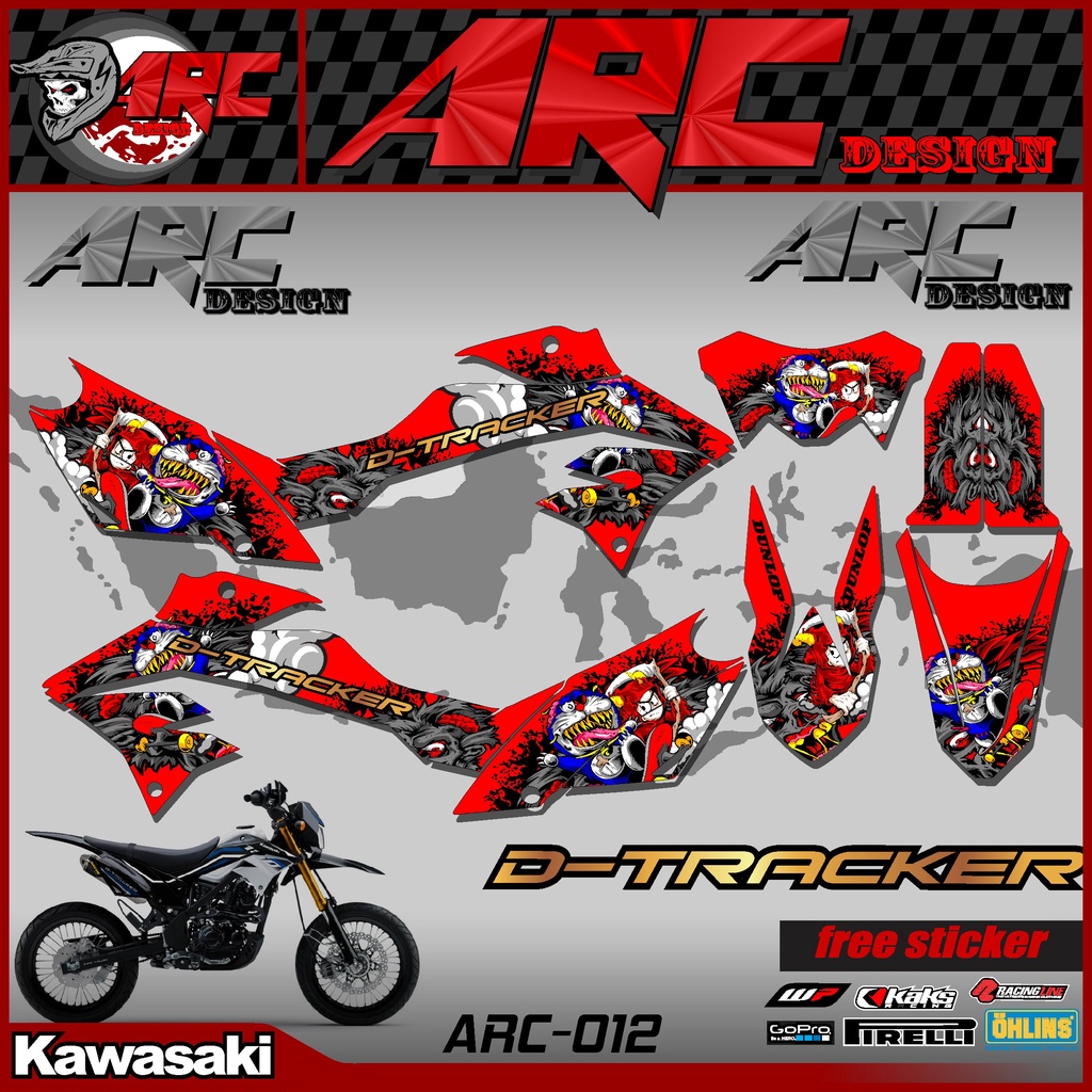 KLX DTRACKER 150 Semi Fullbody Cross Motorcycle Striping Sticker - D-TRACKER 150 New Custom Trail Supermoto Variation Strip Sticker Doraemon Zombie Design TS-012