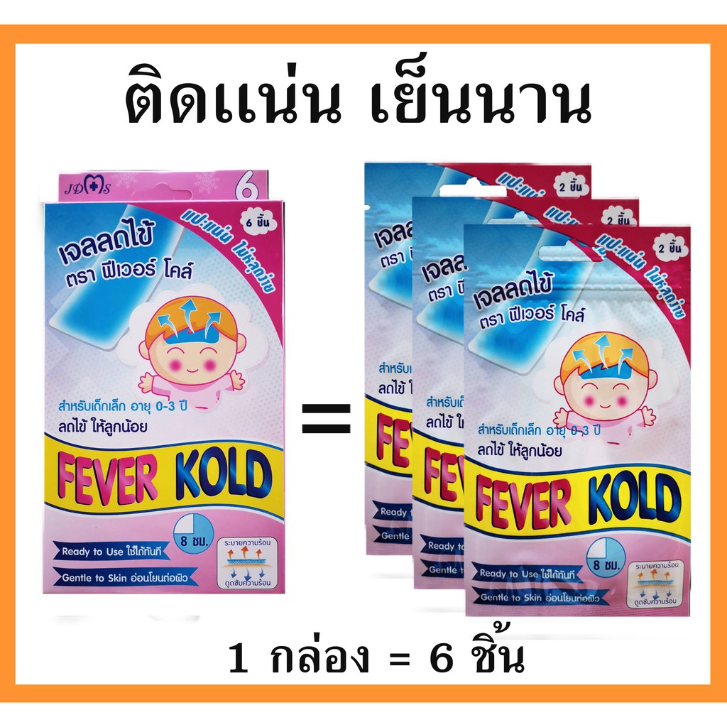 Kool Fever คูลฟีเวอร์ ยี่ห้อFever Kold แผ่นเจลลดไข้เด็กอ่อน 0-2ขวบ แผ่นแปะลดไข้ มีเมนทอลให้ความเย็นเหมือนวิคส์วาโปรับ
