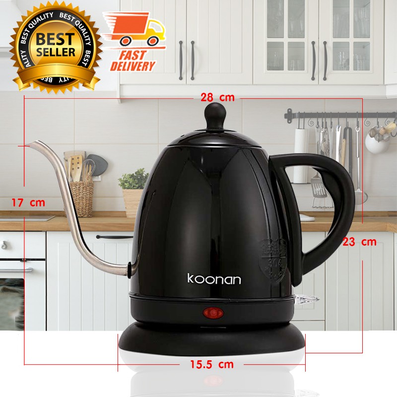 Koonan กาดริป กาแฟ กาต้มน้ำ พร้อมฐานทำความร้อน ขนาด 1 ลิตร สีดำ 1614-181