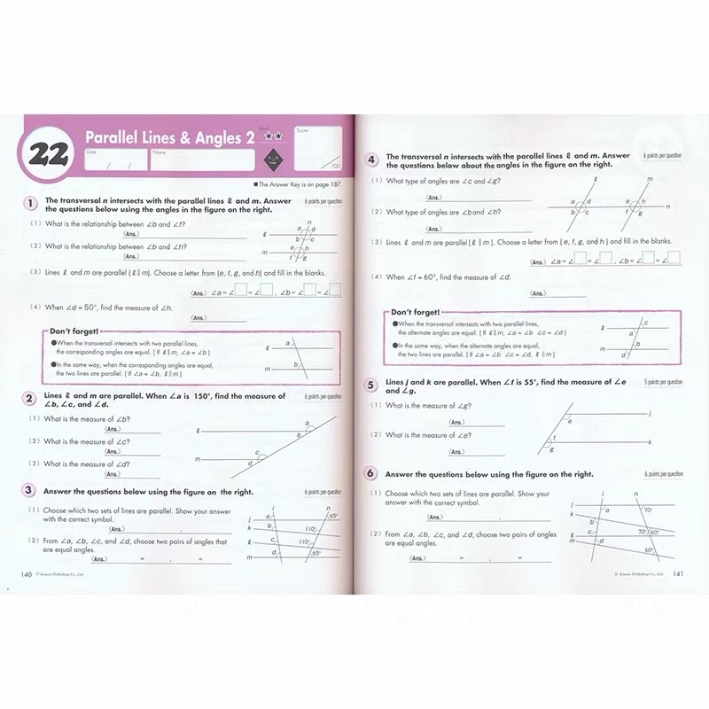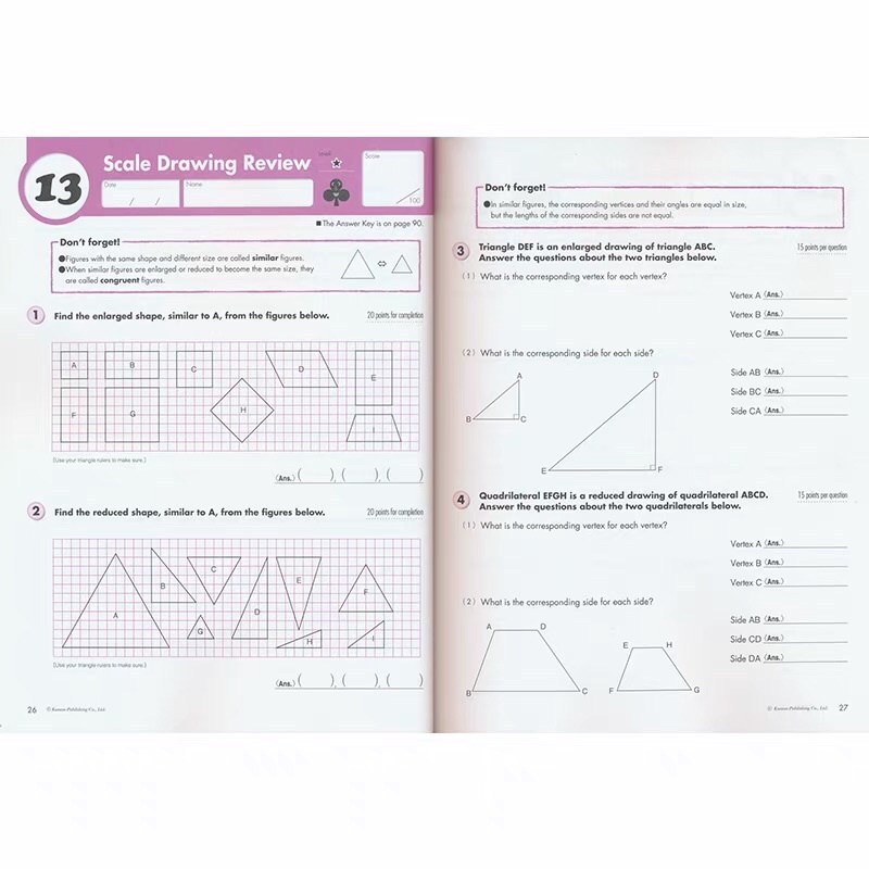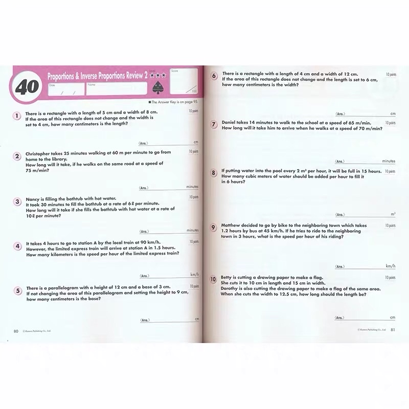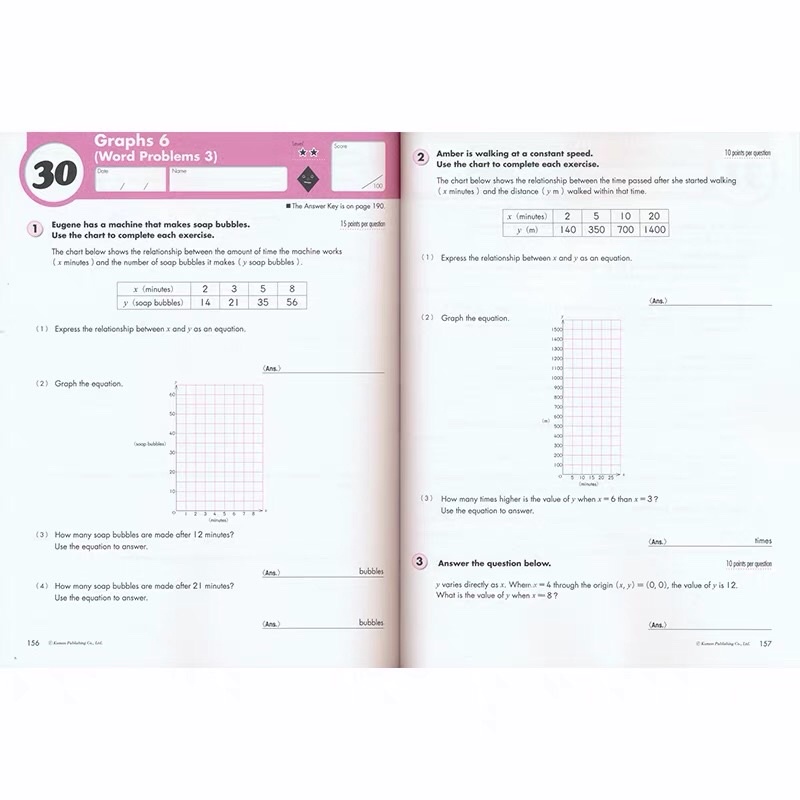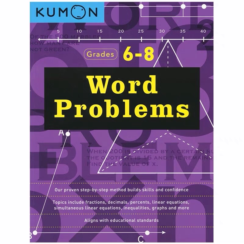 Kumon Middle School Math Workbooks Grade 6-8, Algebra/Geometry/Word Problems, Aged 11~13