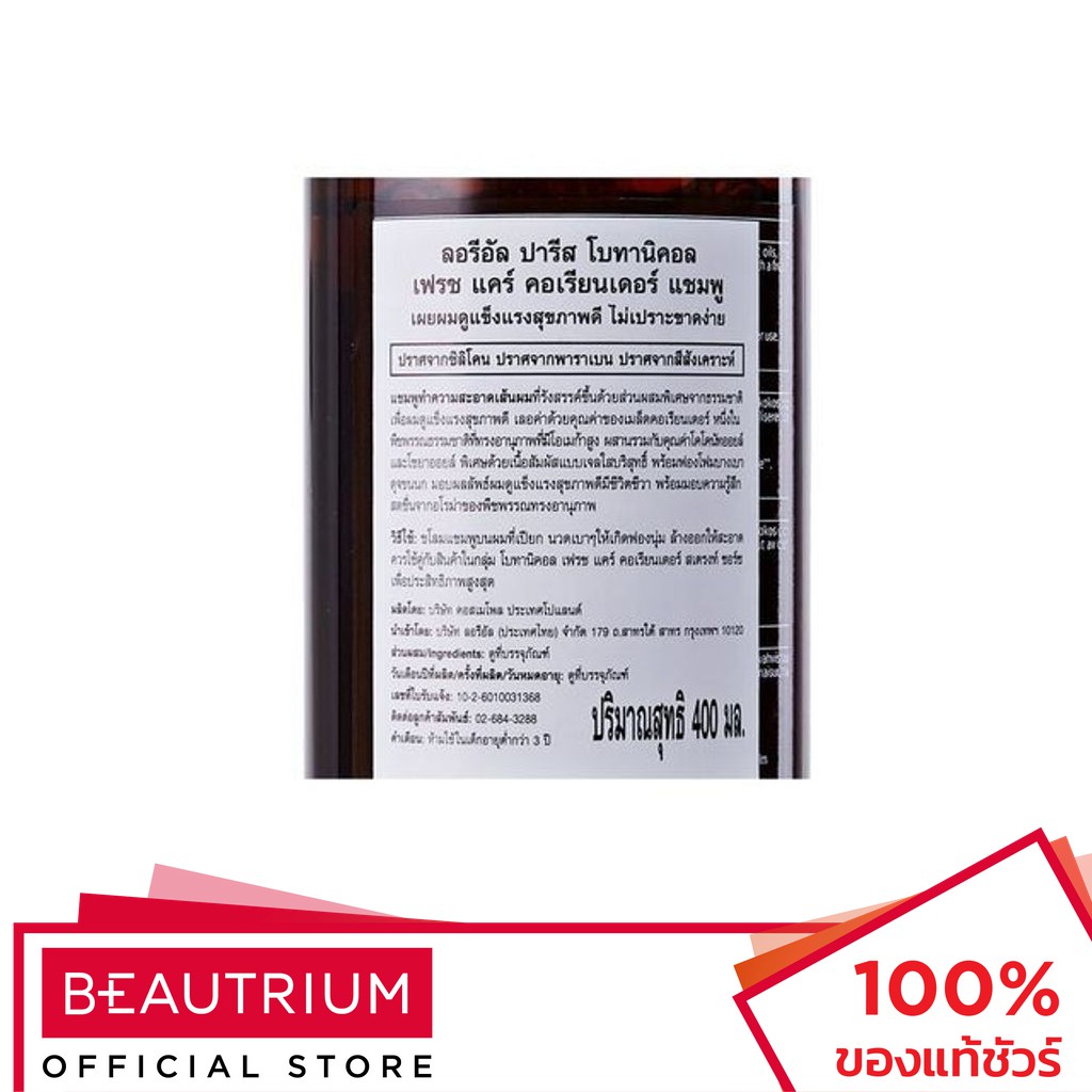 L'ORÉAL PARIS Botanicals Fresh Care Coriander Strength Source Shampoo แชมพู 400ml