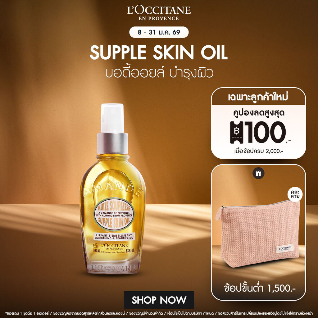 L'Occitane Almond Supple Skin Oil 100ml ล็อกซิทาน ออยล์กระชับผิว อัลมอนด์ ซับเพิล สกิน ออยล์ 100 มล.