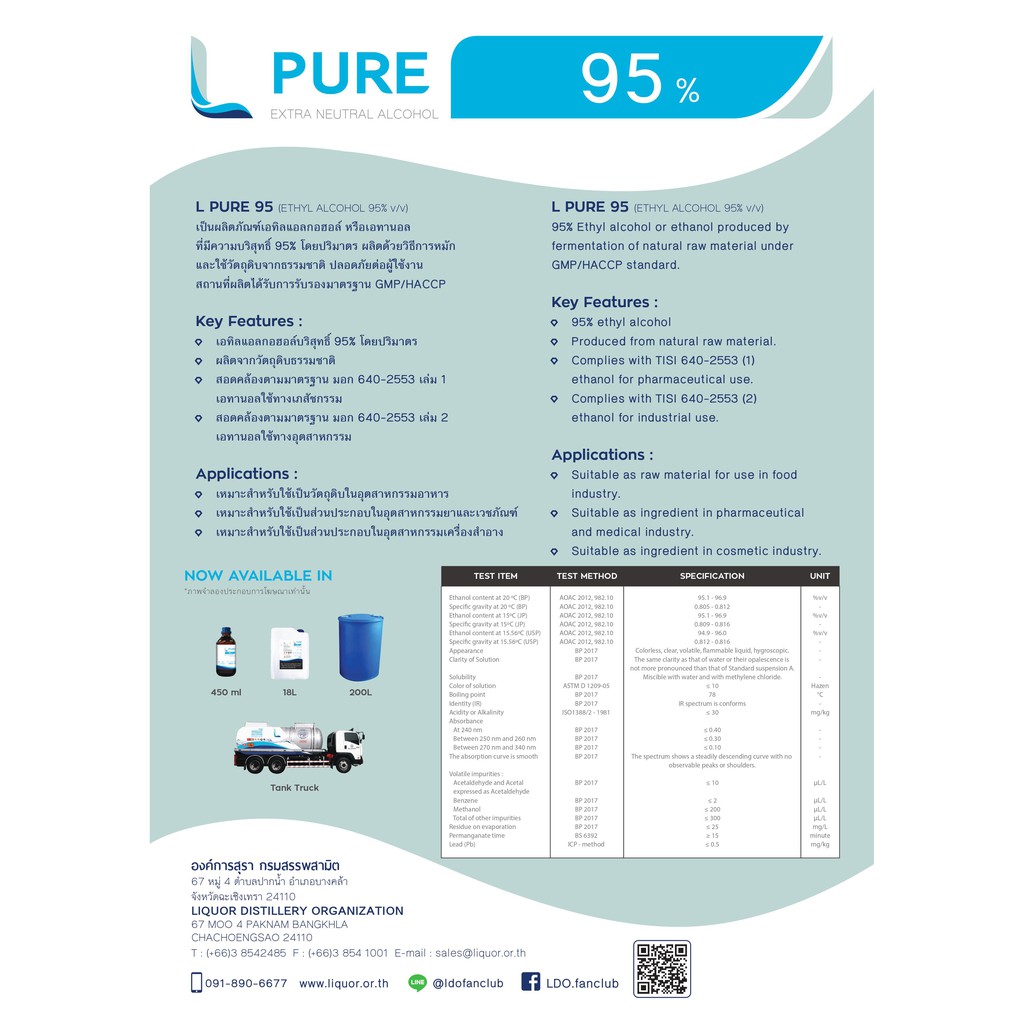 L PURE 95% - 450 ml (ETHYL ALCOHOL 95% FOOD GRADE / Extra Natural Ethyl Alcohol)