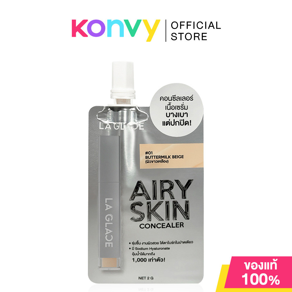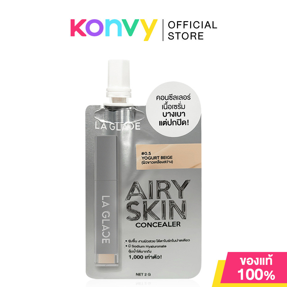 LA GLACE Airy Skin Mini Concealer 2g #00 Yogurt คอนซีลเลอร์แบบซองลากลาส เนื้อเซรั่ม บางเบาแต่ปกปิด.