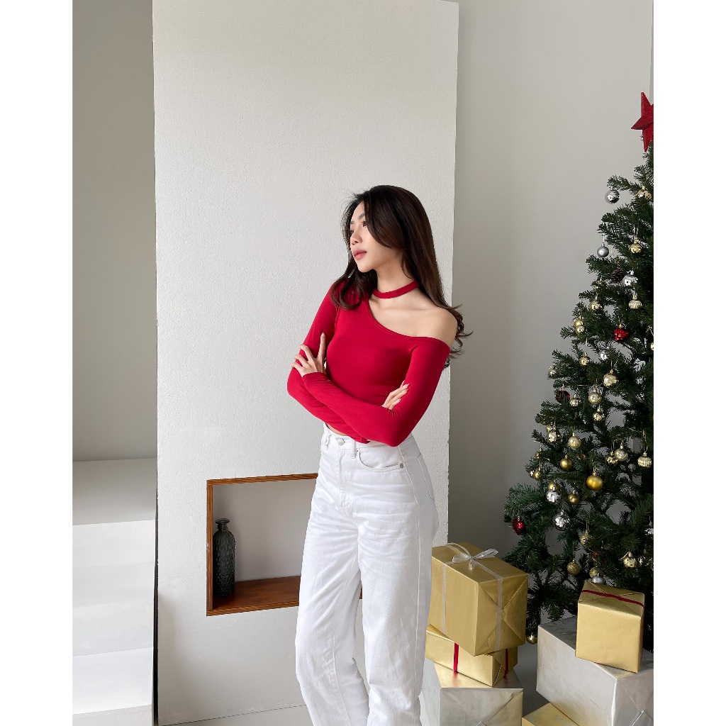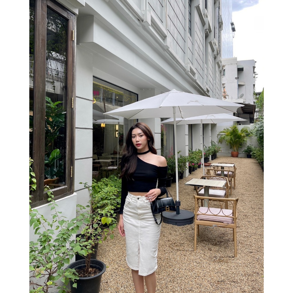 LC.ladiesclothess #LC188 ALLIE TOP เสื้อครอป เสื้อคล้องคอ เสื้อปาดไหล่