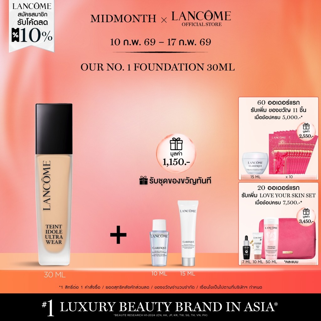 LANCOME TEINT IDOLE ULTRA WEAR 30ML รองพื้นลังโคม รองพื้น ปกปิด คุมมัน บางเบา พร้อมบำรุงผิว อัพเกรดสูตรใหม่ [IS]