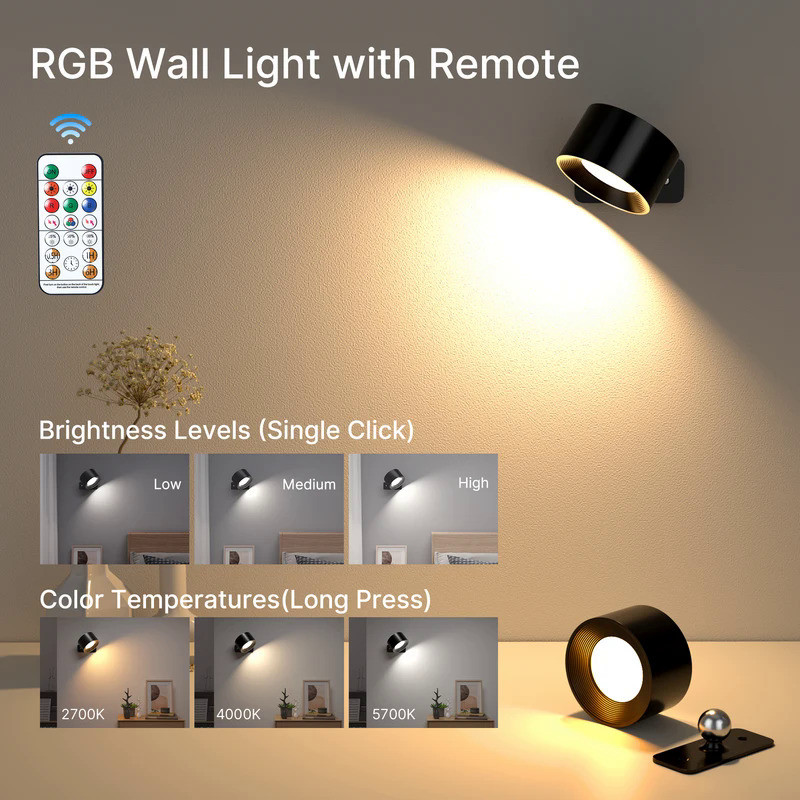 LED Wall Sconce 19 RGB Colors Dimmable, Rechargeable Wall Sconces Battery Operated Picture Light, Touch & Remote Control
