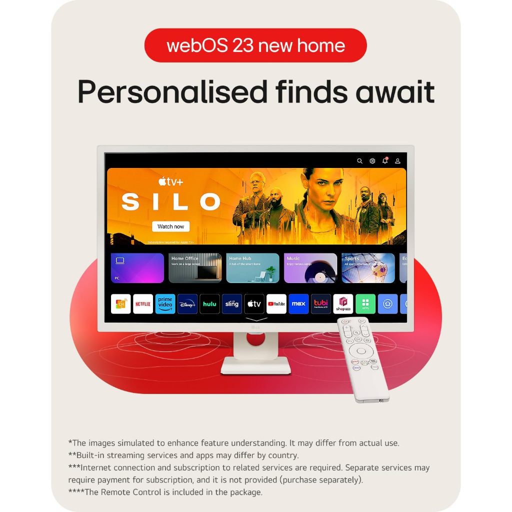 LG MyView Smart Monitor 27" 27U511SA-W, 32" 32SR50F-W,1080P IPS, Wifi & B, webOS Smart TV Apps with Remote White