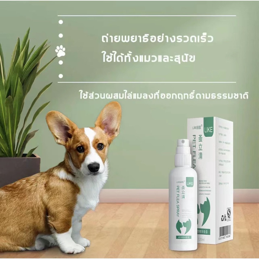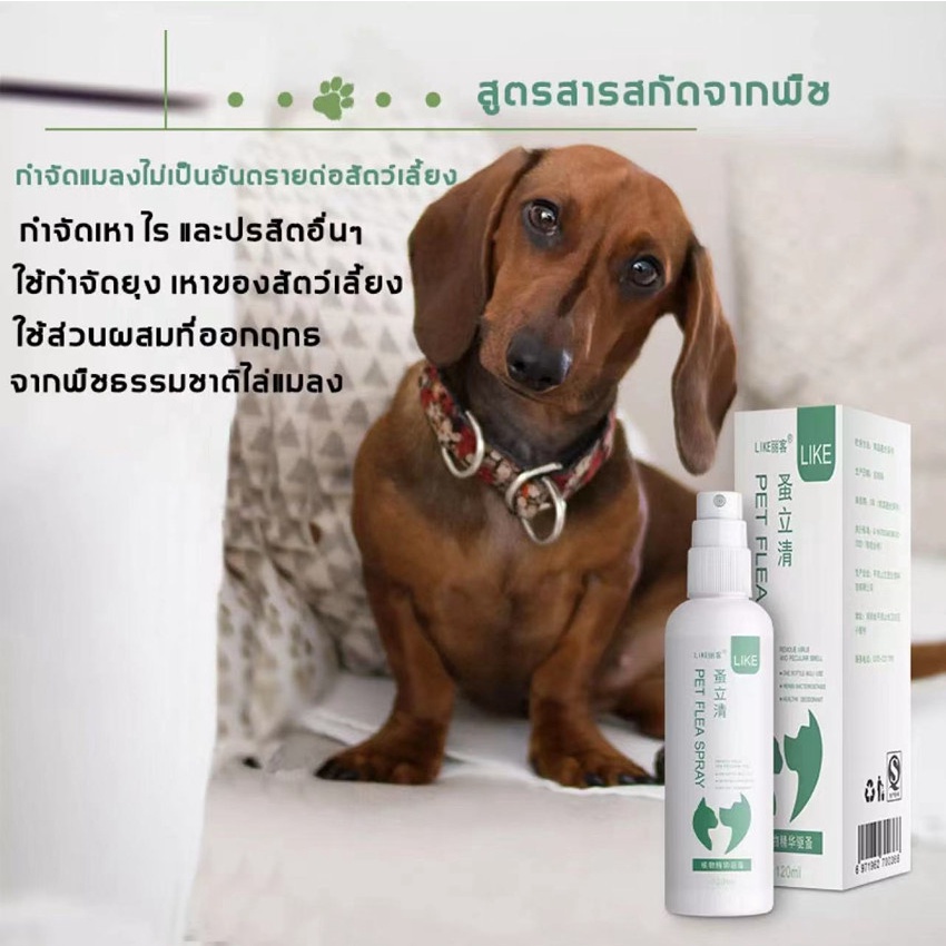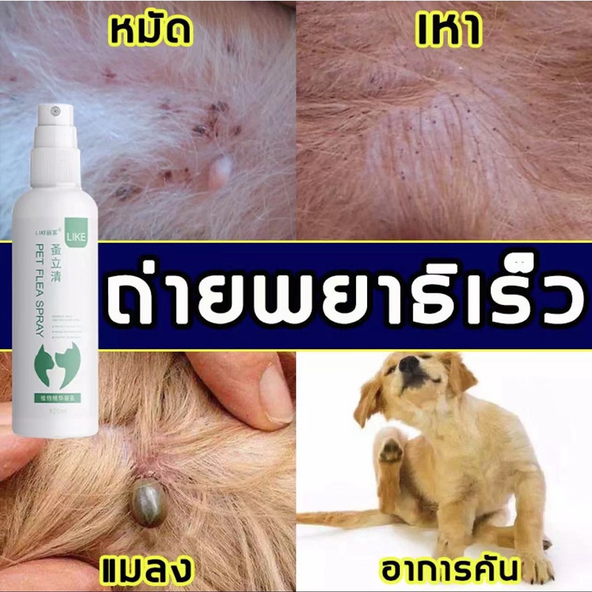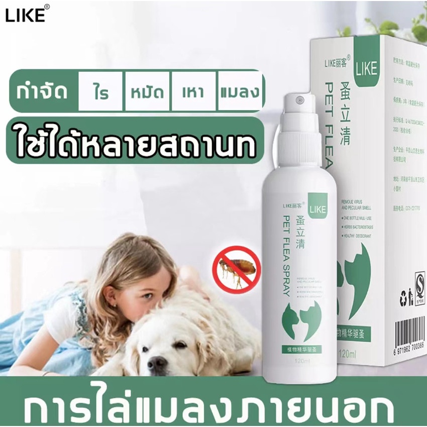 LIKE สเปรย์ฆ่าเห็บ 120ML กำจัดหมัดและเหา อ่อนโยนไม่ทำร้ายสัตว์เลี้ยง ใช้ได้สัตว์เลี้ยงทุกพันธ(พ่นเห็บหมัดสุนัขแมว สเปรย์