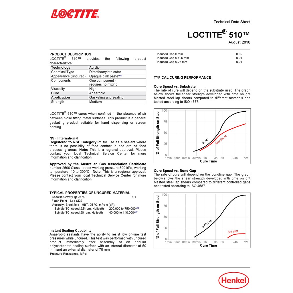 LOCTITE 510 (ล็อคไทท์) GASKET ELIMINATOR ปะเก็นเหลว น้ำยาผนึกหน้าแปลน เหมาะสำหรับหน้าแปลนเหล็ก และเหล็กกล้า ขนาด 50ml.