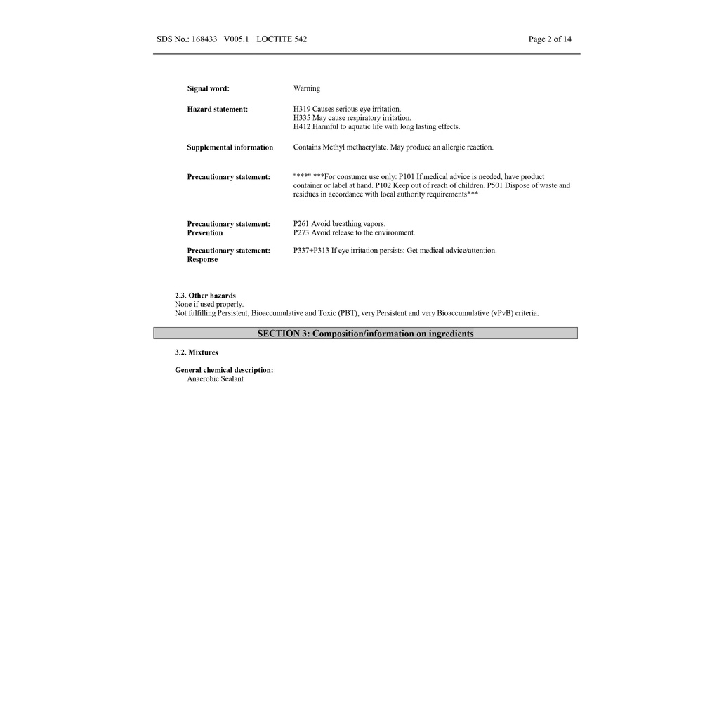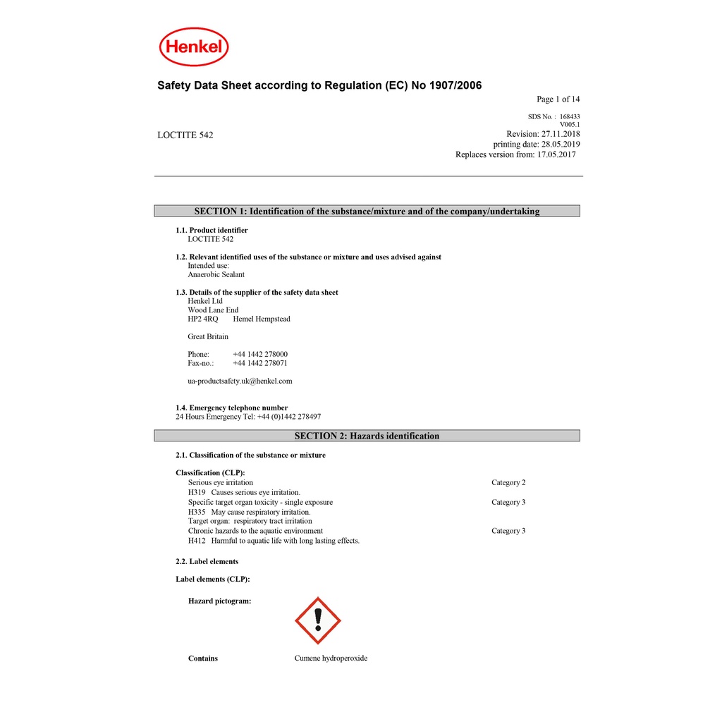 LOCTITE 542 THREAD SEALANT น้ำยาซีลเกลียว แรงยึดปานกลาง เซตตัวเร็ว ป้องกันการรั่วซึม ขนาด 50 ml.