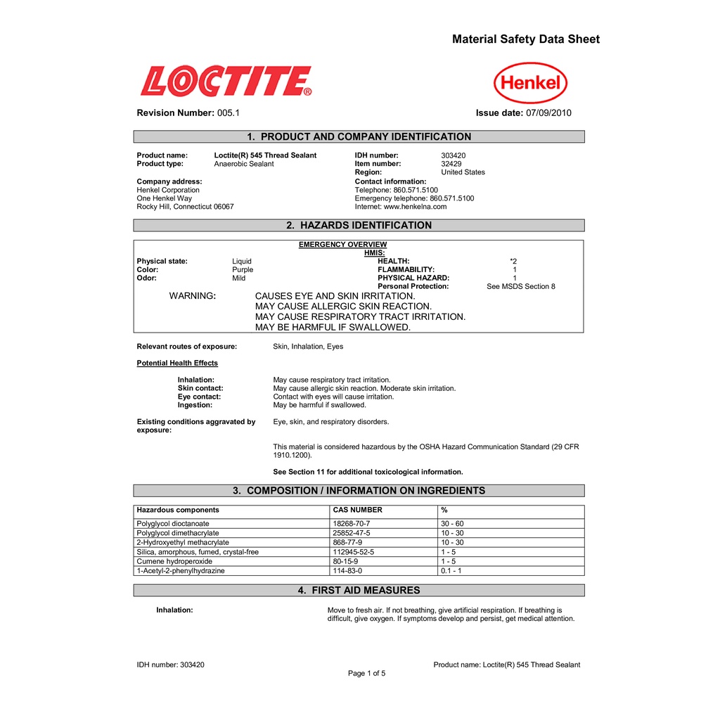 LOCTITE 545 ( THREAD SEALANT ) น้ำยาซีลเกลียวคูณสมบัติการหล่อลื่นสูงใช้ล็อค, ซีลท่อโลหะ ข้อต่อขนาดเล็กที่มีเกลียวละเอียด