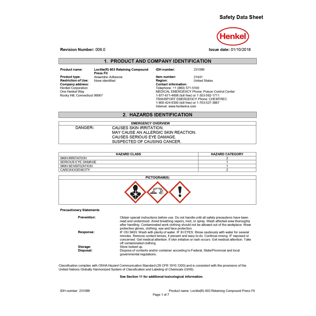 LOCTITE 603 Retaining Compound น้ำยาตรึงเพลา แรงยึดสูง เหมาะสำหรับตลับลูกปืนที่ถูกเผา ทนทานต่อน้ำมันสูง ขนาด 50 ml.