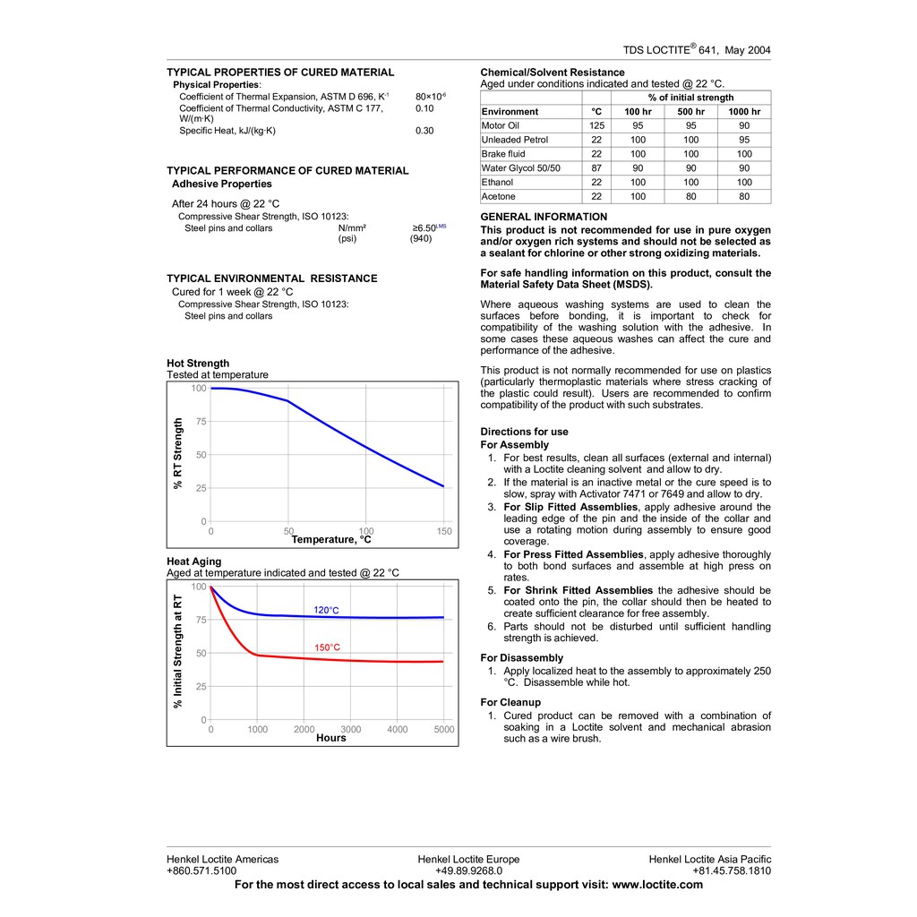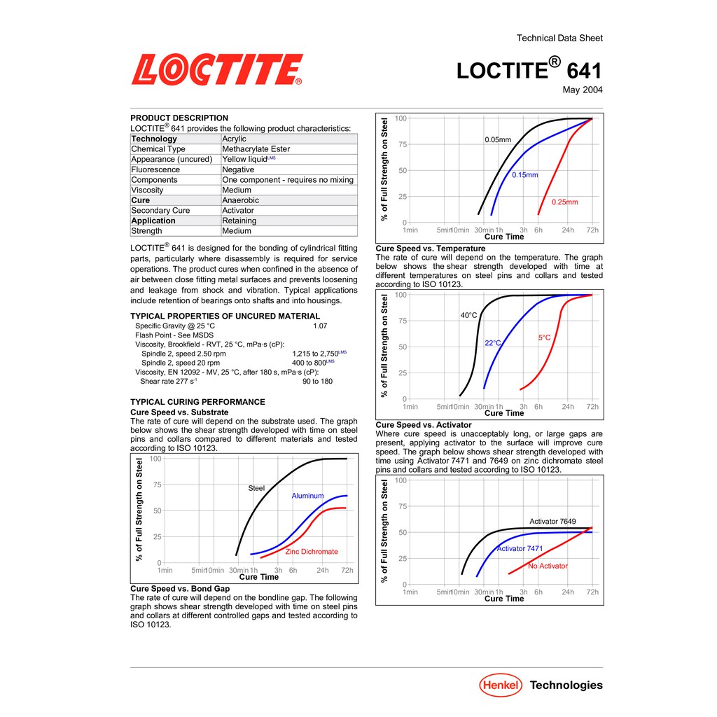 LOCTITE 641 น้ำยาตรึงเพลา แรงยึดสูง เหมาะสำหรับงานที่ต้องการถอดชิ้นส่วนประกอบ ขนาด 50 ml.