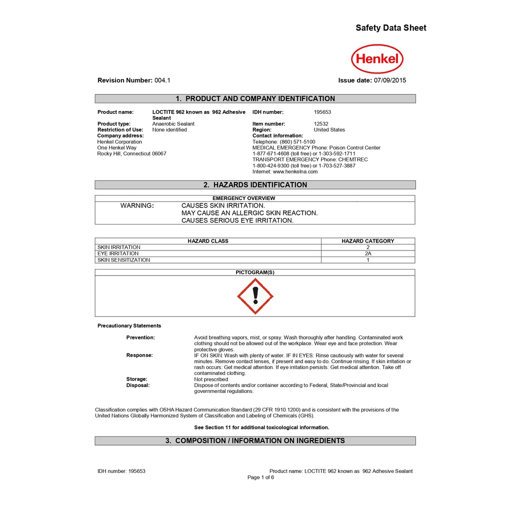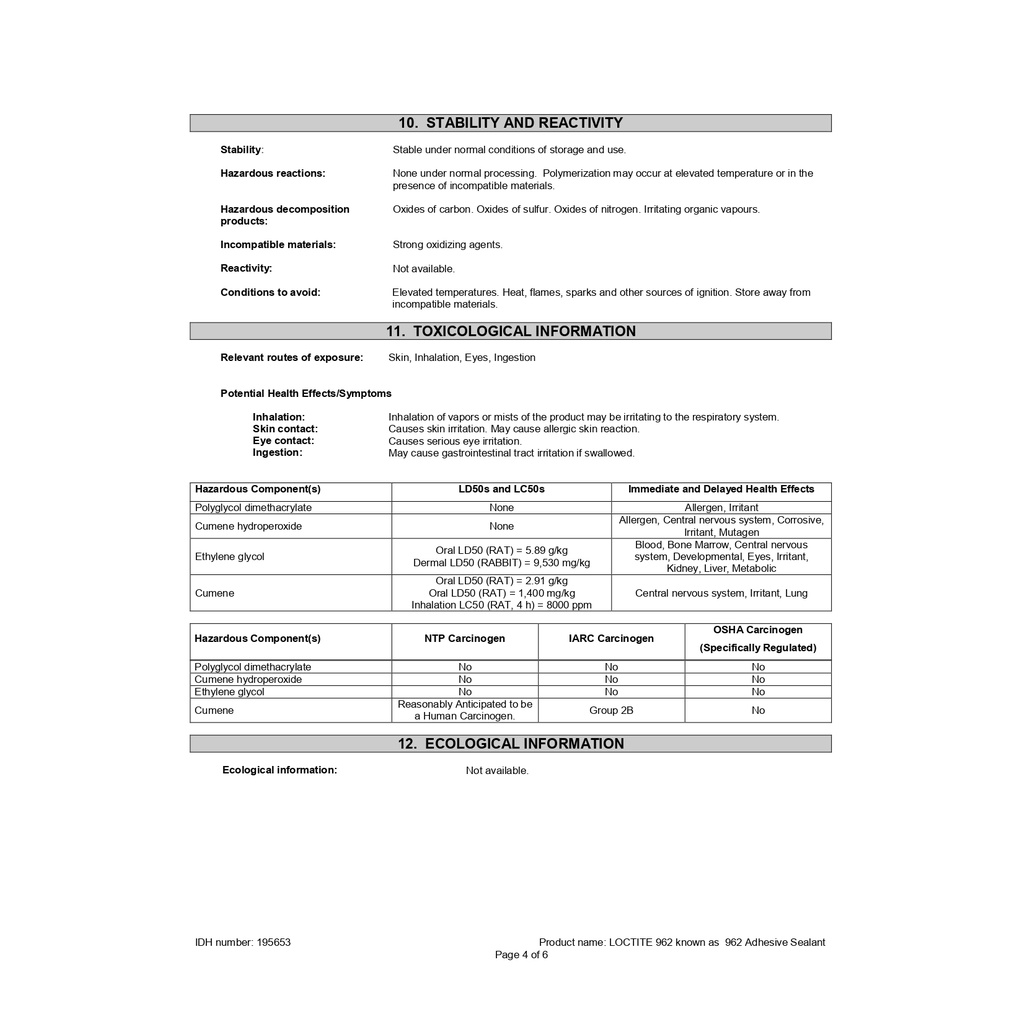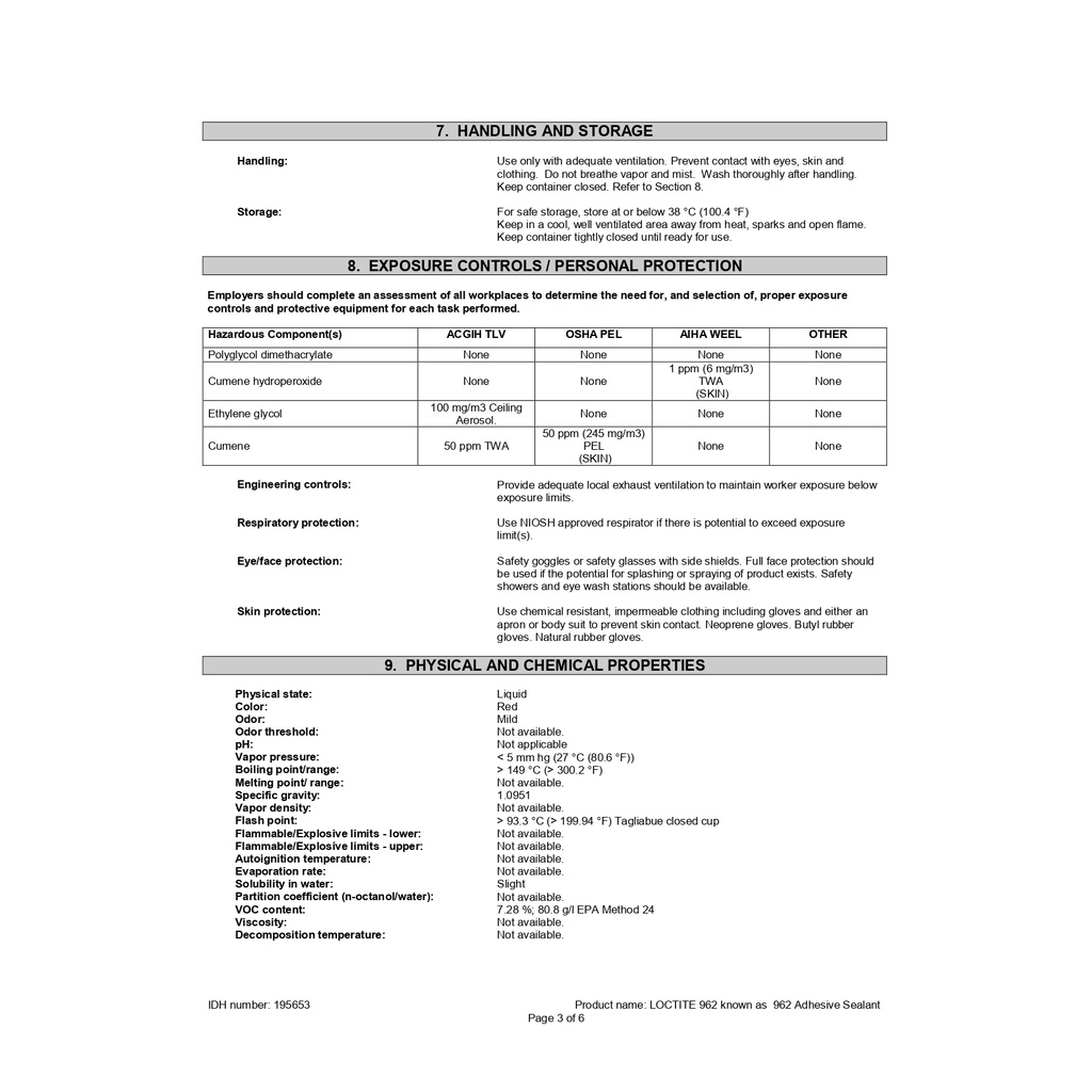 LOCTITE 962T น้ำยาล็อคเกลียว อะคริลิคซีลแลนท์ชนิดไดเมทาไครเลตเอสเทอร์ สีแดงทึบแสง รับแรงสูง เรืองแสง