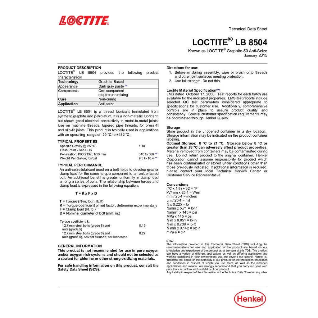 LOCTITE LB 8504 Graphite 50 Silicone สารหล่อลื่นเกลียวป้องกันการติด สีเทาเข้ม ให้ค่าการนำไฟฟ้าที่ดี ขนาด 453.6G.