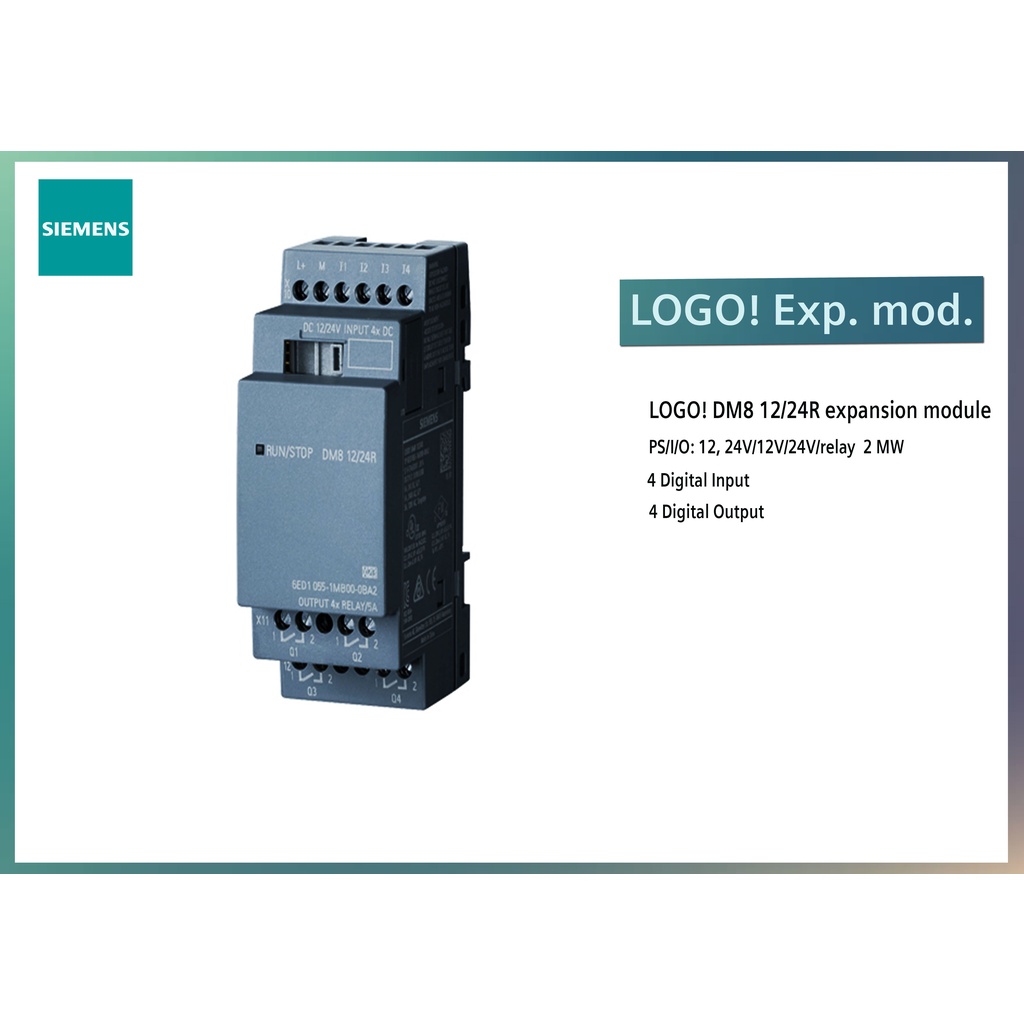 LOGO! DM8 12/24R expansion module, PS/I/O: 12, 24V/12V/24V/relay, 2 MW, 4 DI/4 DO for LOGO! 8