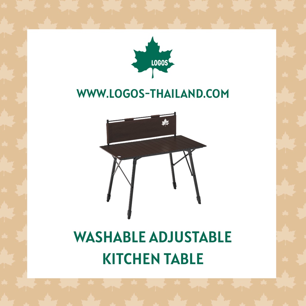 LOGOS โต๊ะสนามปรับความสูงได้ พร้อมที่บังลม Washable Adjustable Kitchen Table