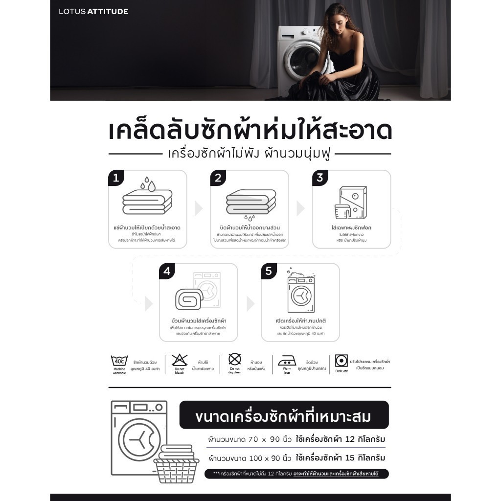 LOTUS ATTITUDE ชุดผ้าปู + ผ้านวม เทคโนโลยีผ้าถนอมผิว ทอ 990 เส้น รุ่น Norden ส่งฟรี