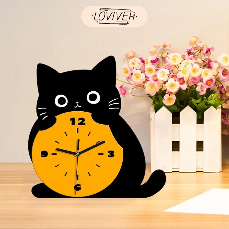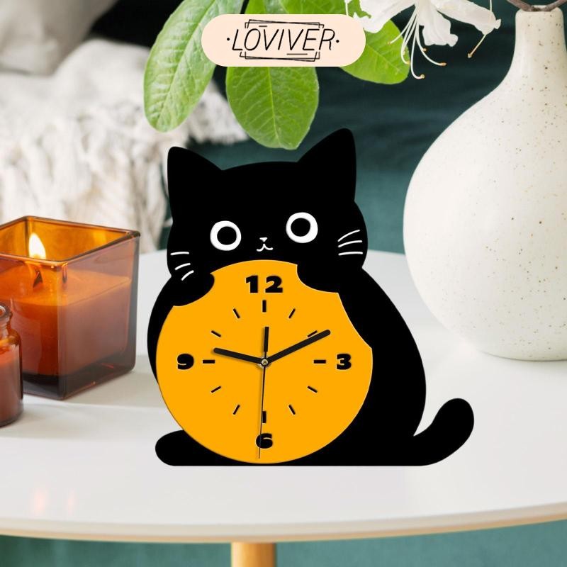 LOVIVER นาฬิกาตั้งโต๊ะลายแมวสำหรับตกแต่งบ้าน พร้อมใช้งานในห้องนั่งเล่นและข้างเตียง