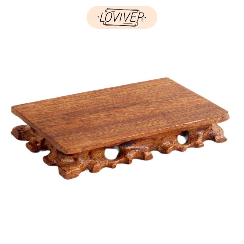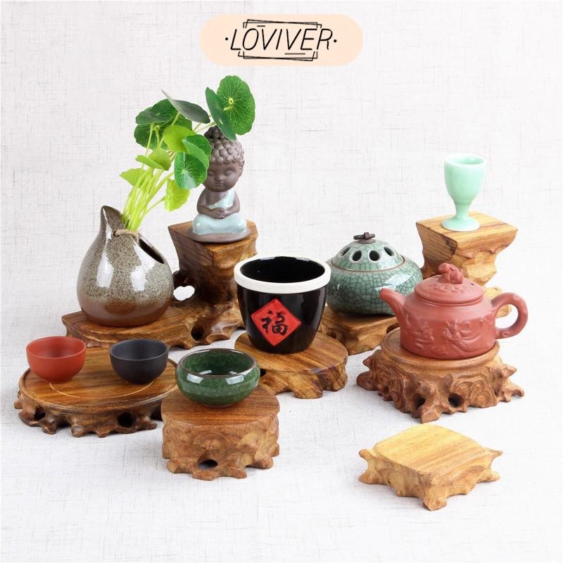 LOVIVER ย้อนยุคฐานไม้ไม้เนื้อแข็งหม้อดินยืนกระถางดอกไม้ฐานที่ไม่ซ้ํากันไม้แกะสลักแจกันกระถางดอกไม้โฮมออฟฟิศตกแต่ง