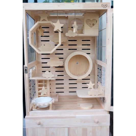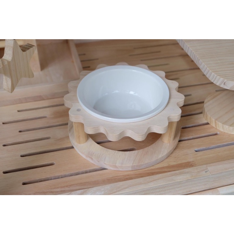 LP130 ถ้วยอาหารพร้อมถ้วยเซรามิก ใช้กับแมว กระต่าย ชินชิลล่า แพรี่ด็อก แกสบี้ ทำจากไม้เกรดA พร้อมเคลือบกันน้ำ กันเชื้อรา