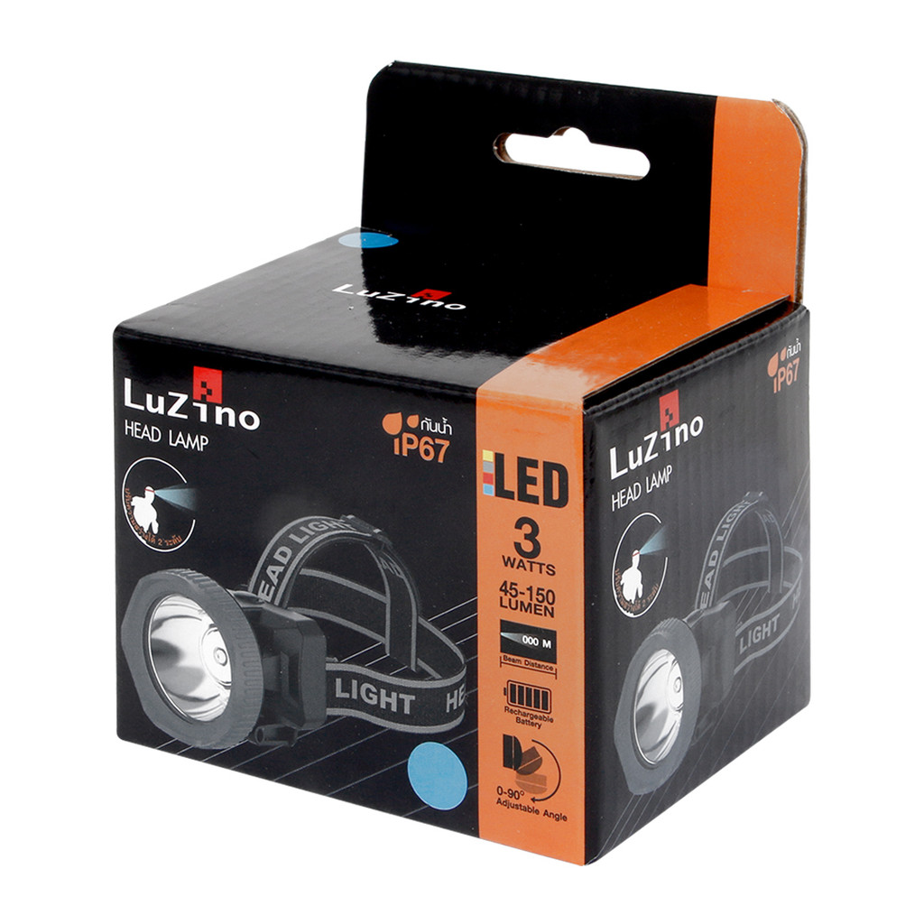 LUZINO ไฟฉายคาดศรีษะ LED 3 วัตต์ รุ่น KN-L5332 IP67 สีดำ - เทา