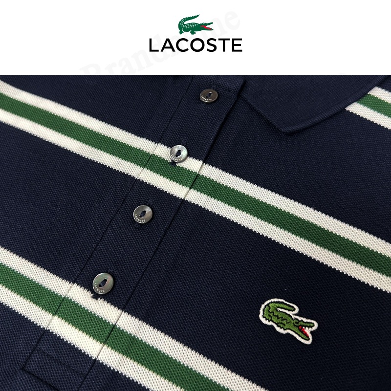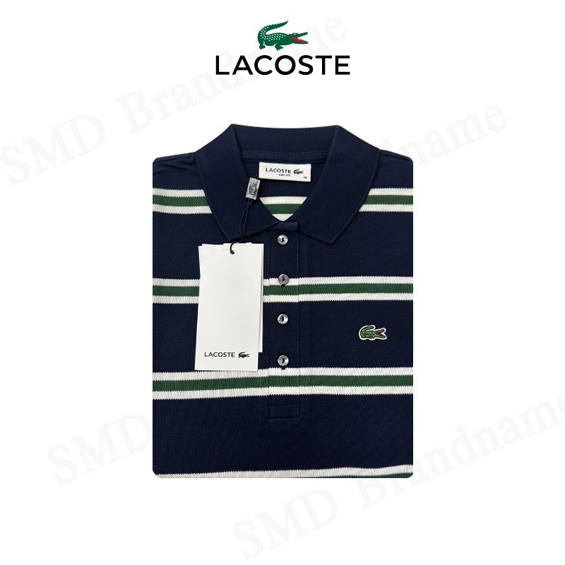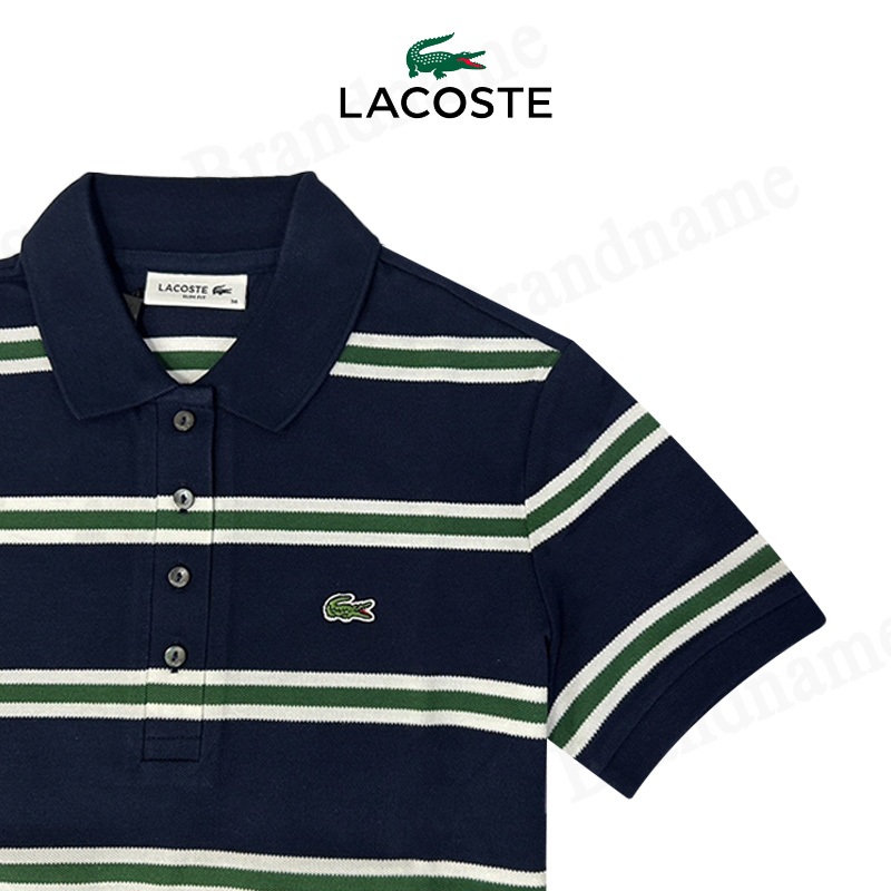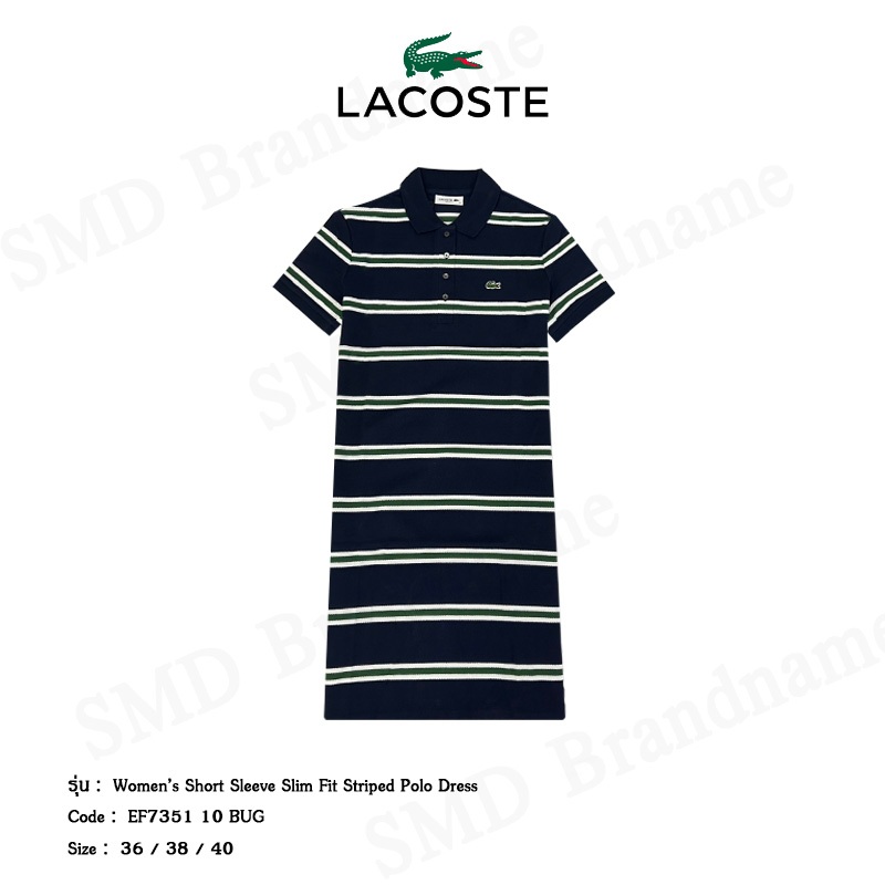 Lacoste เดรสโปโลหญิง รุ่น Women’s Short Sleeve Slim Fit Striped Polo Dress Code: EF7351 10 BUG