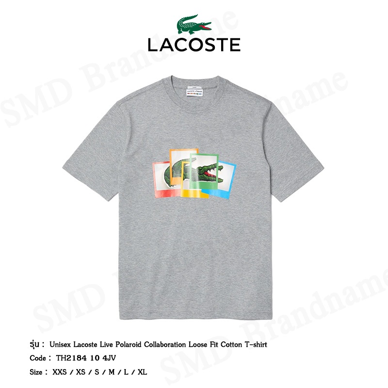 Lacoste เสื้อยืดคอกลม รุ่น Unisex Lacoste Live Polaroid Collaboration Loose Fit Cotton T-shirt Code: TH2184 10 4JV