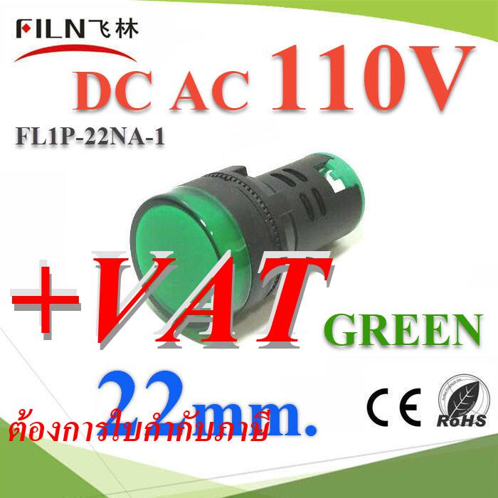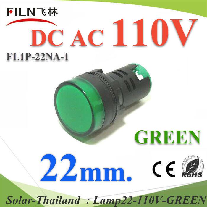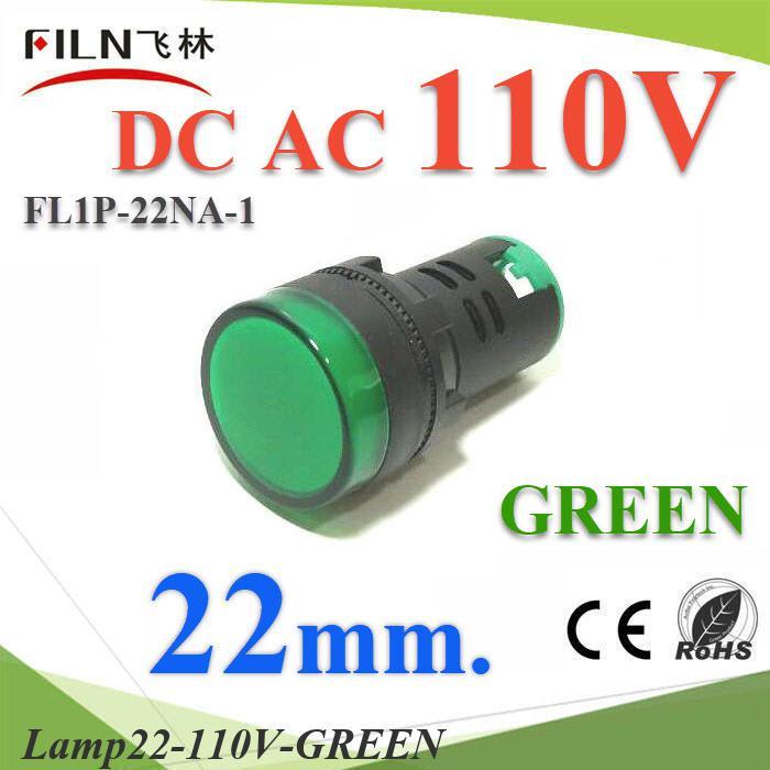 ไพลอตแลมป์ สีเขียว ขนาด 22 mm. AC-DC 110V ไฟตู้คอนโทรล LED